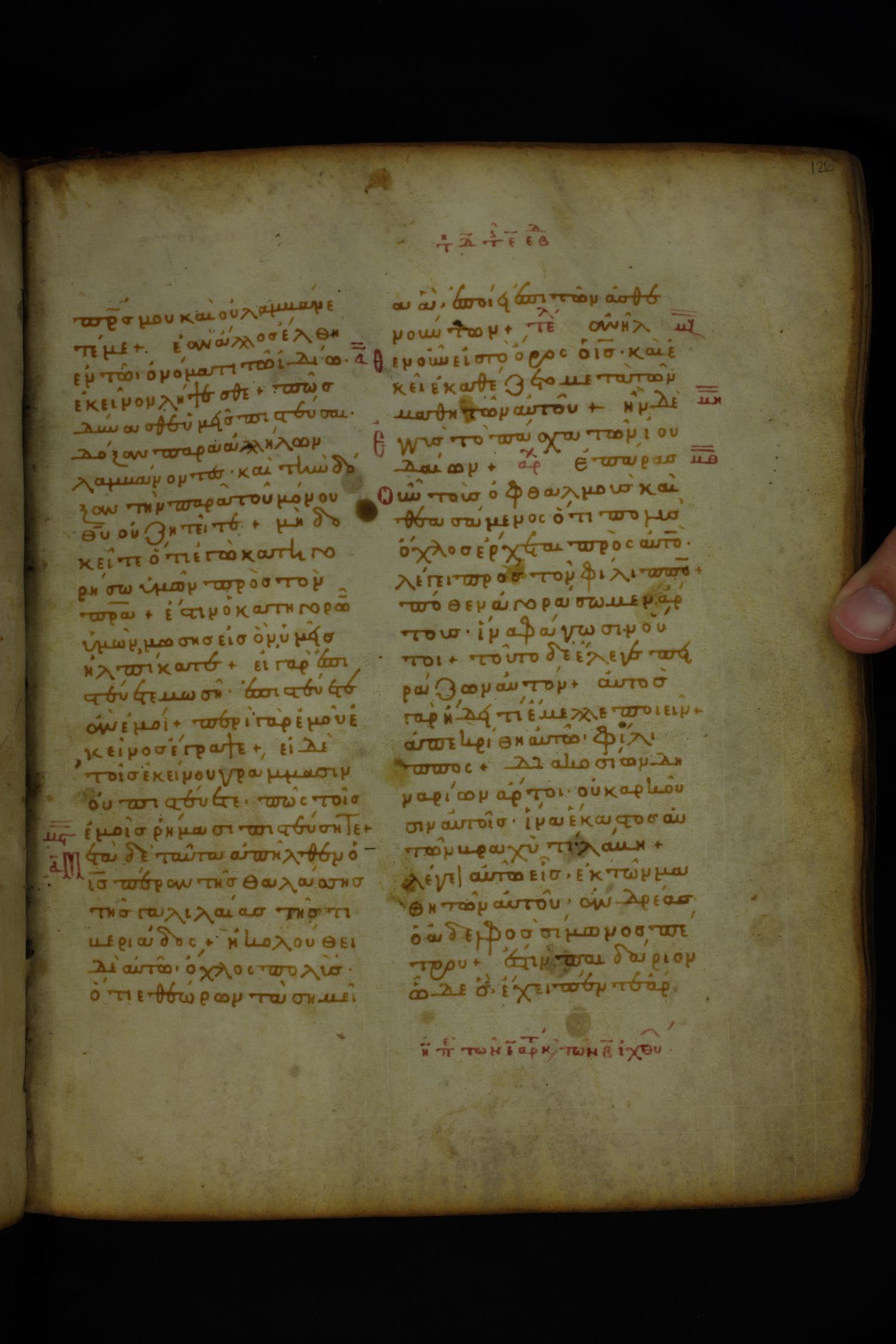 Twelfth century minuscule of the Gospels on parchment; 185 leaves, 2 columns, 26–30 lines per column.