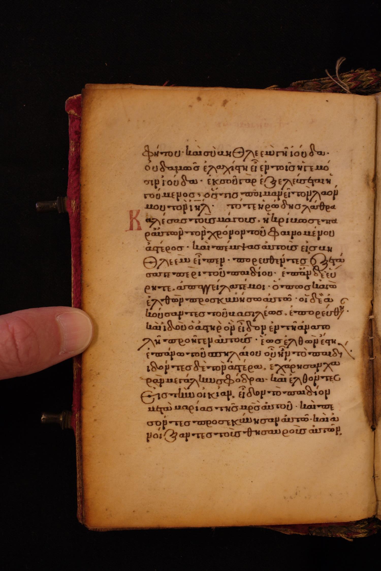 Thirteenth century minuscule of the Gospels on parchment; 256 leaves, single column, 22 lines per column.