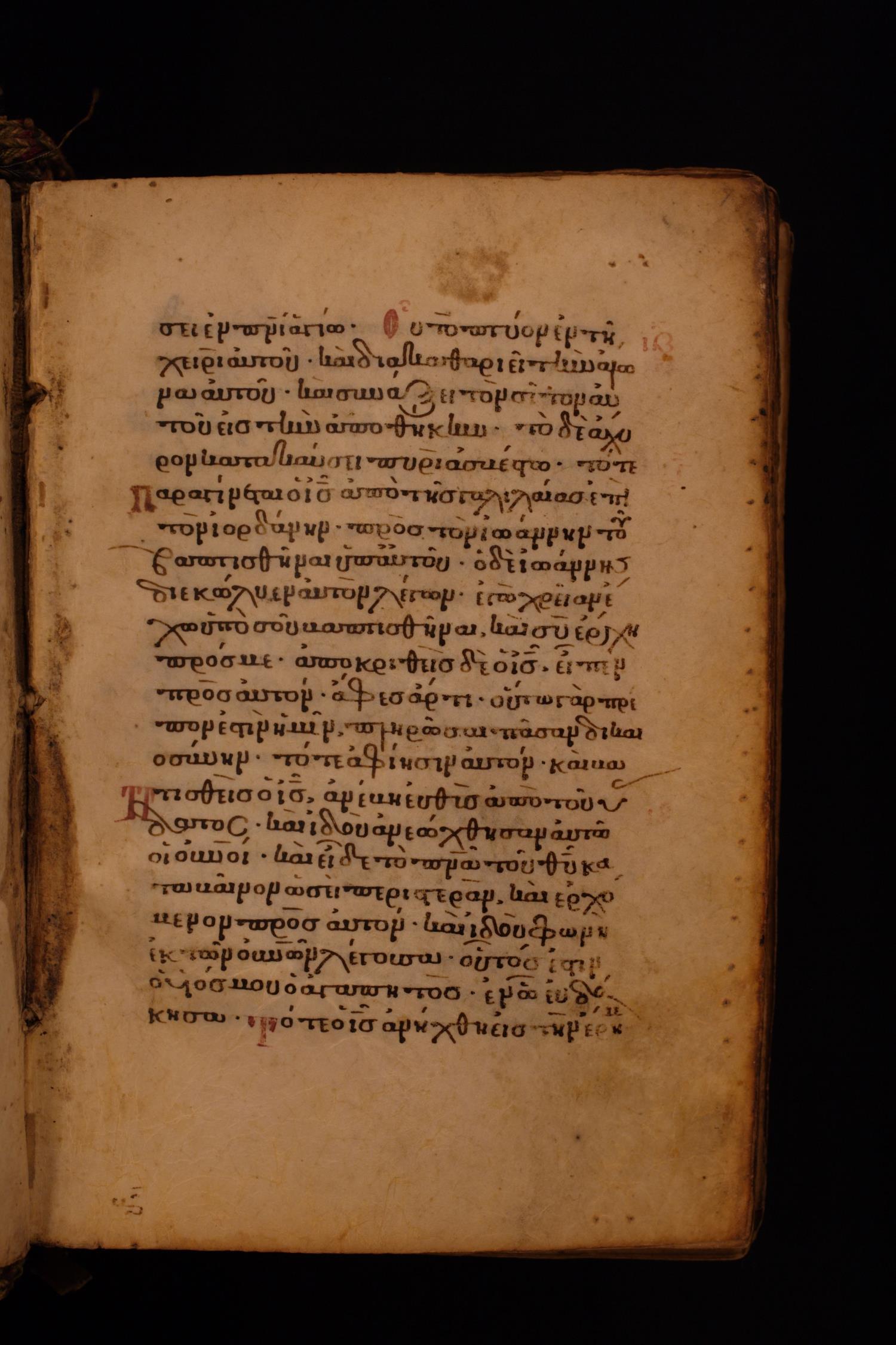 Thirteenth century minuscule of the Gospels on parchment; 256 leaves, single column, 22 lines per column.