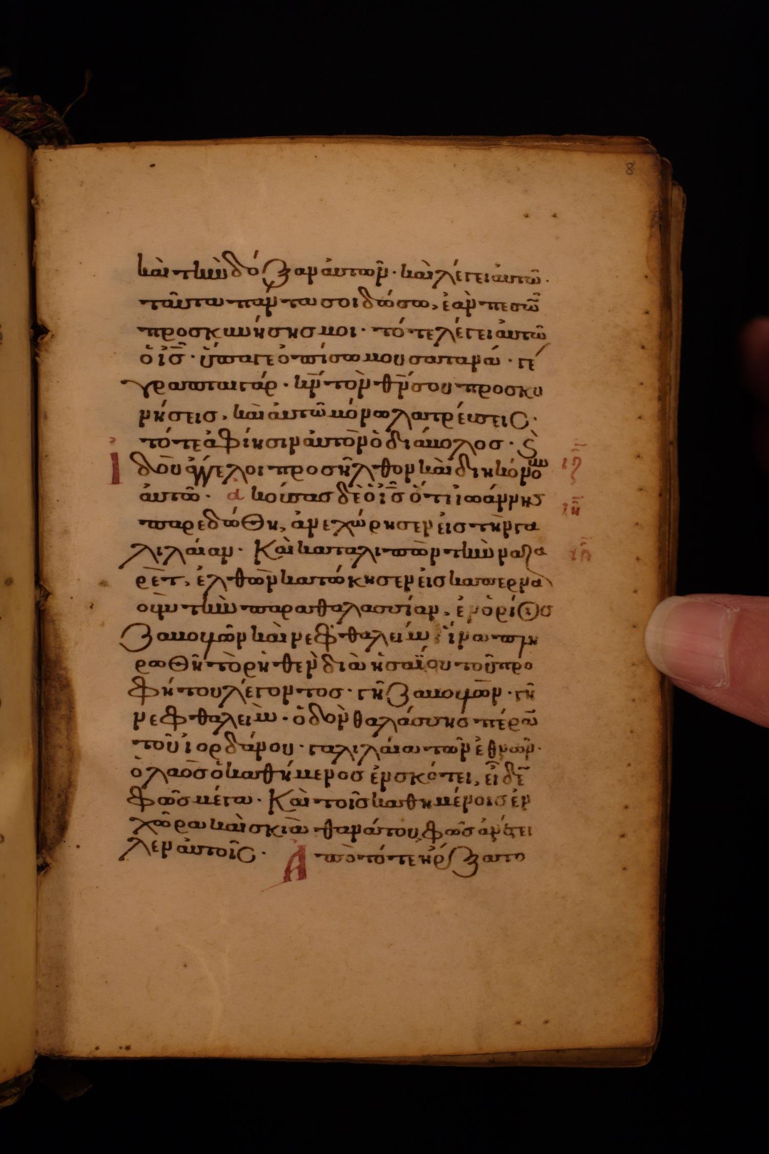 Thirteenth century minuscule of the Gospels on parchment; 256 leaves, single column, 22 lines per column.