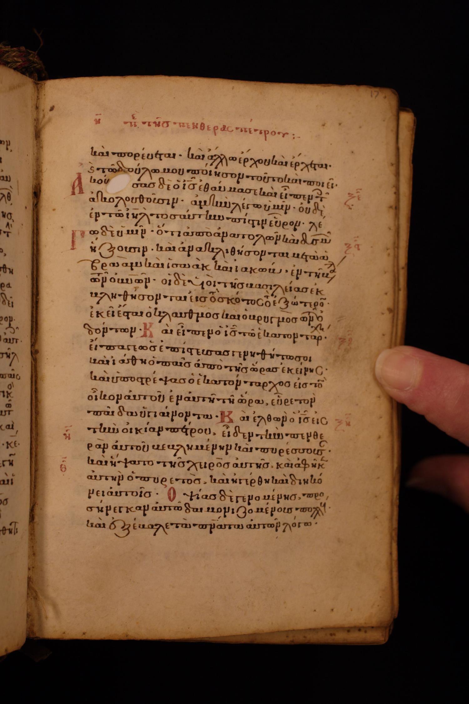 Thirteenth century minuscule of the Gospels on parchment; 256 leaves, single column, 22 lines per column.
