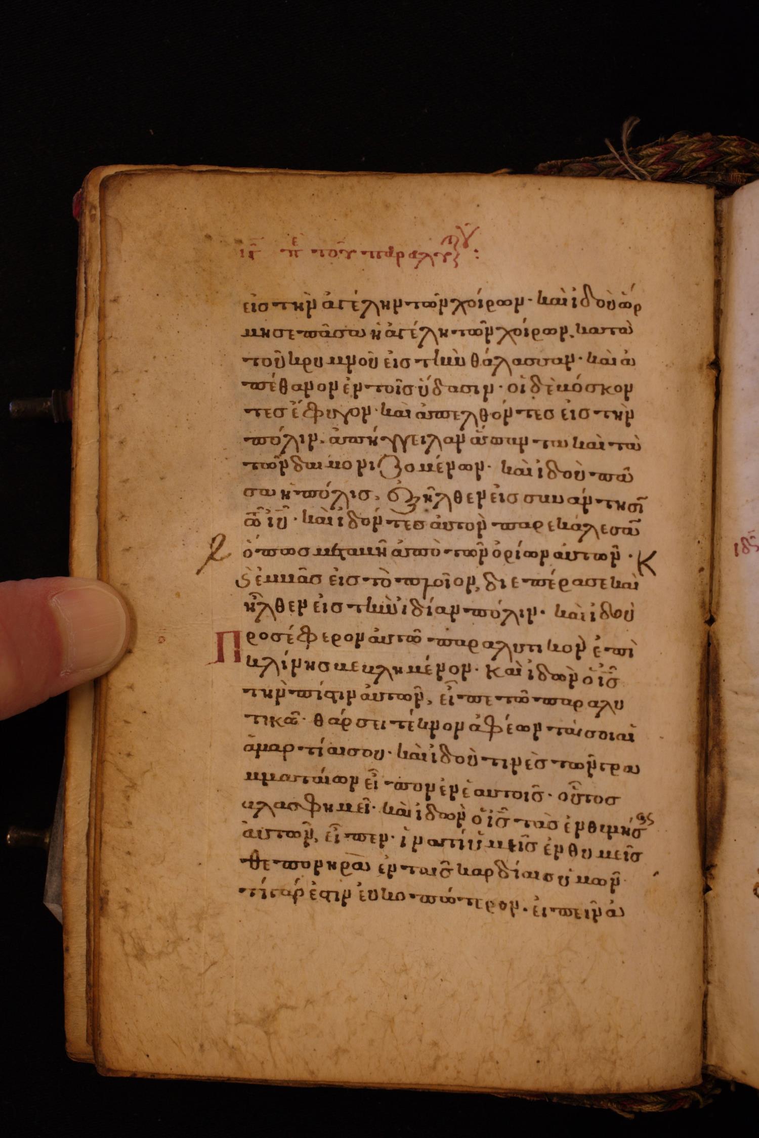 Thirteenth century minuscule of the Gospels on parchment; 256 leaves, single column, 22 lines per column.
