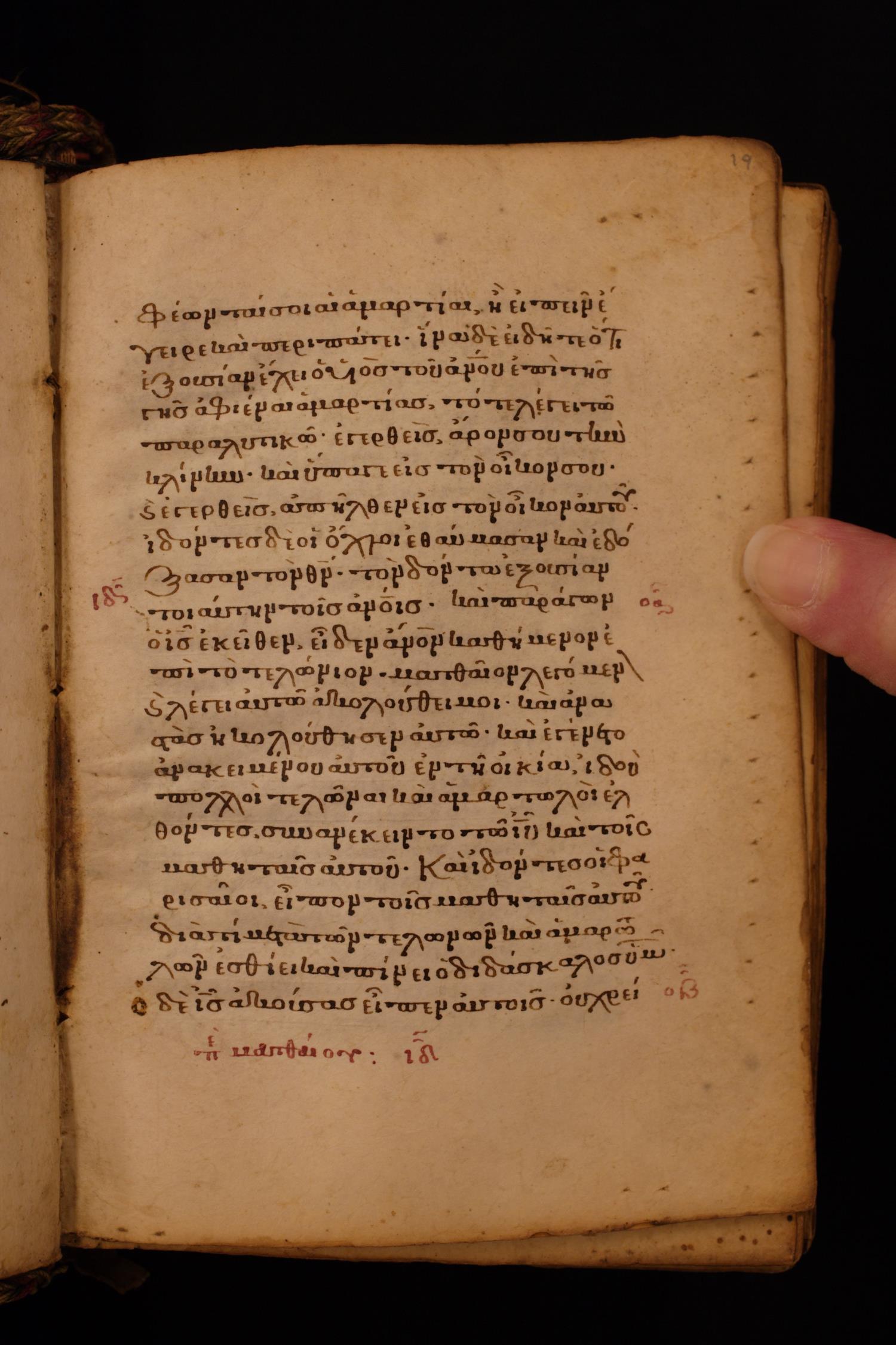 Thirteenth century minuscule of the Gospels on parchment; 256 leaves, single column, 22 lines per column.