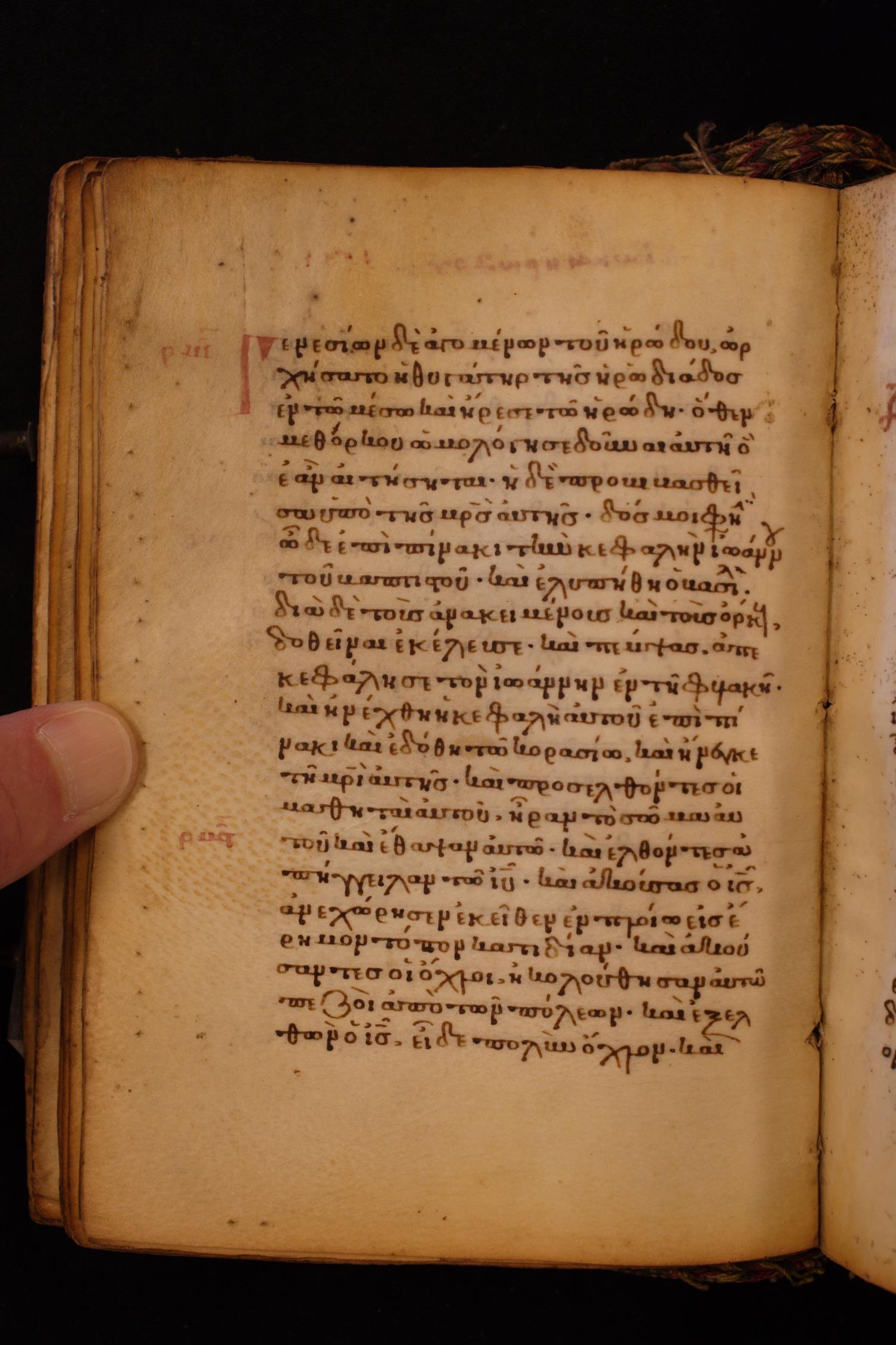Thirteenth century minuscule of the Gospels on parchment; 256 leaves, single column, 22 lines per column.