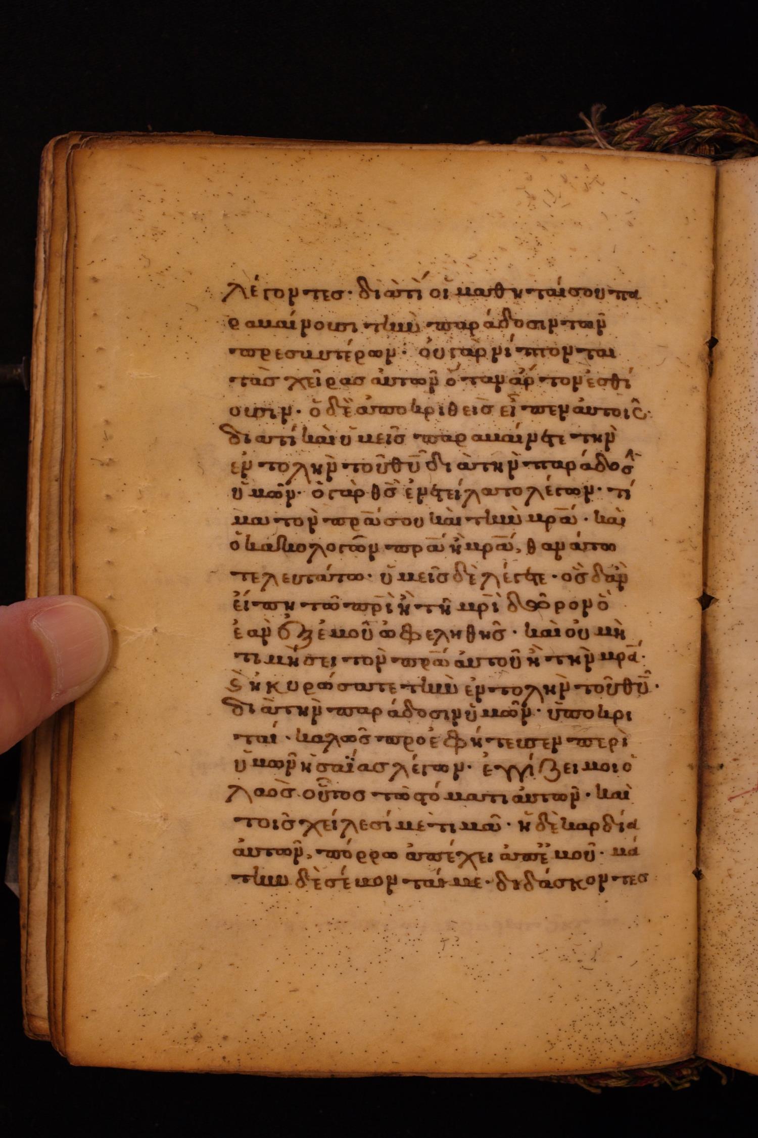 Thirteenth century minuscule of the Gospels on parchment; 256 leaves, single column, 22 lines per column.