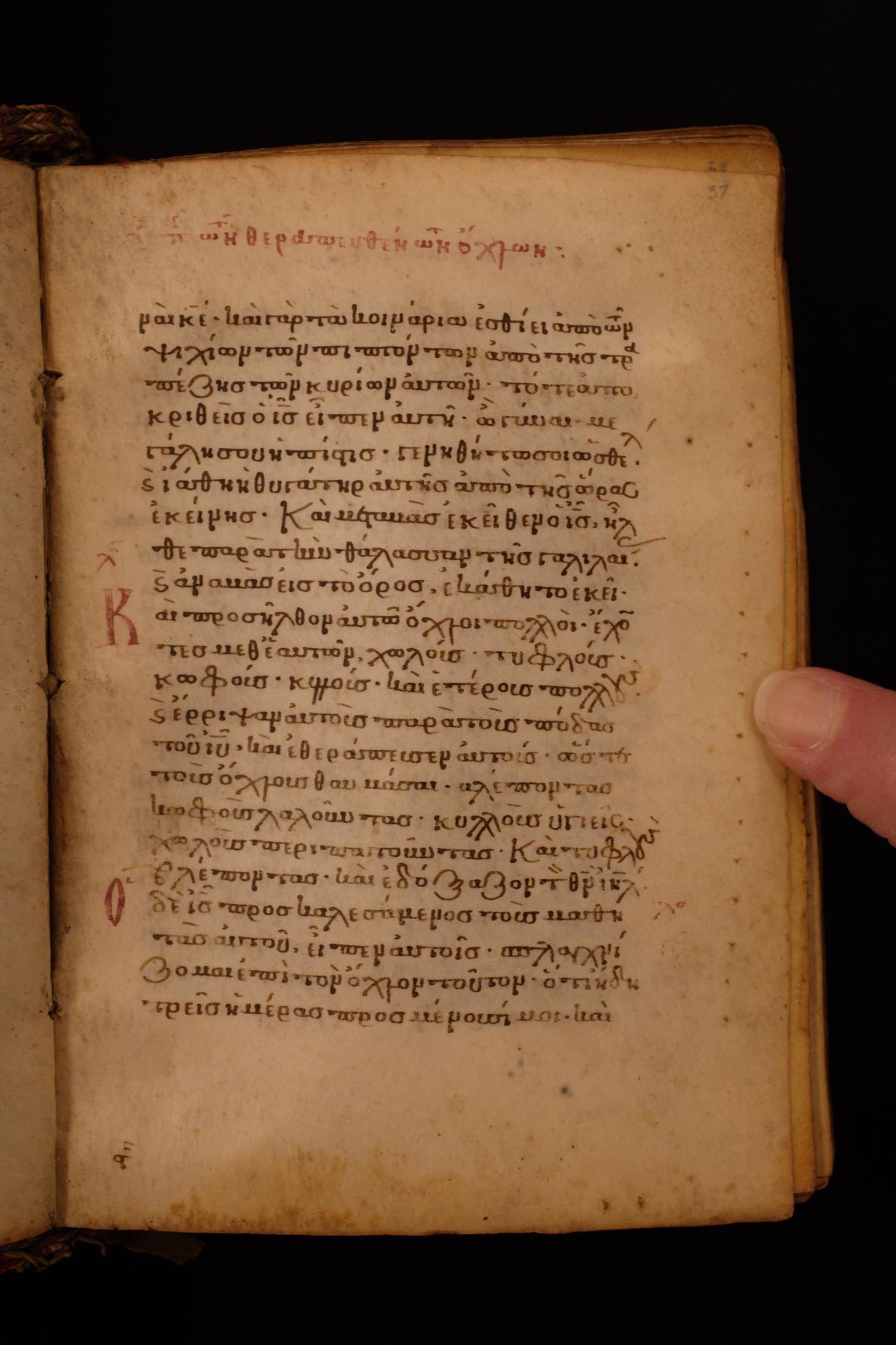 Thirteenth century minuscule of the Gospels on parchment; 256 leaves, single column, 22 lines per column.