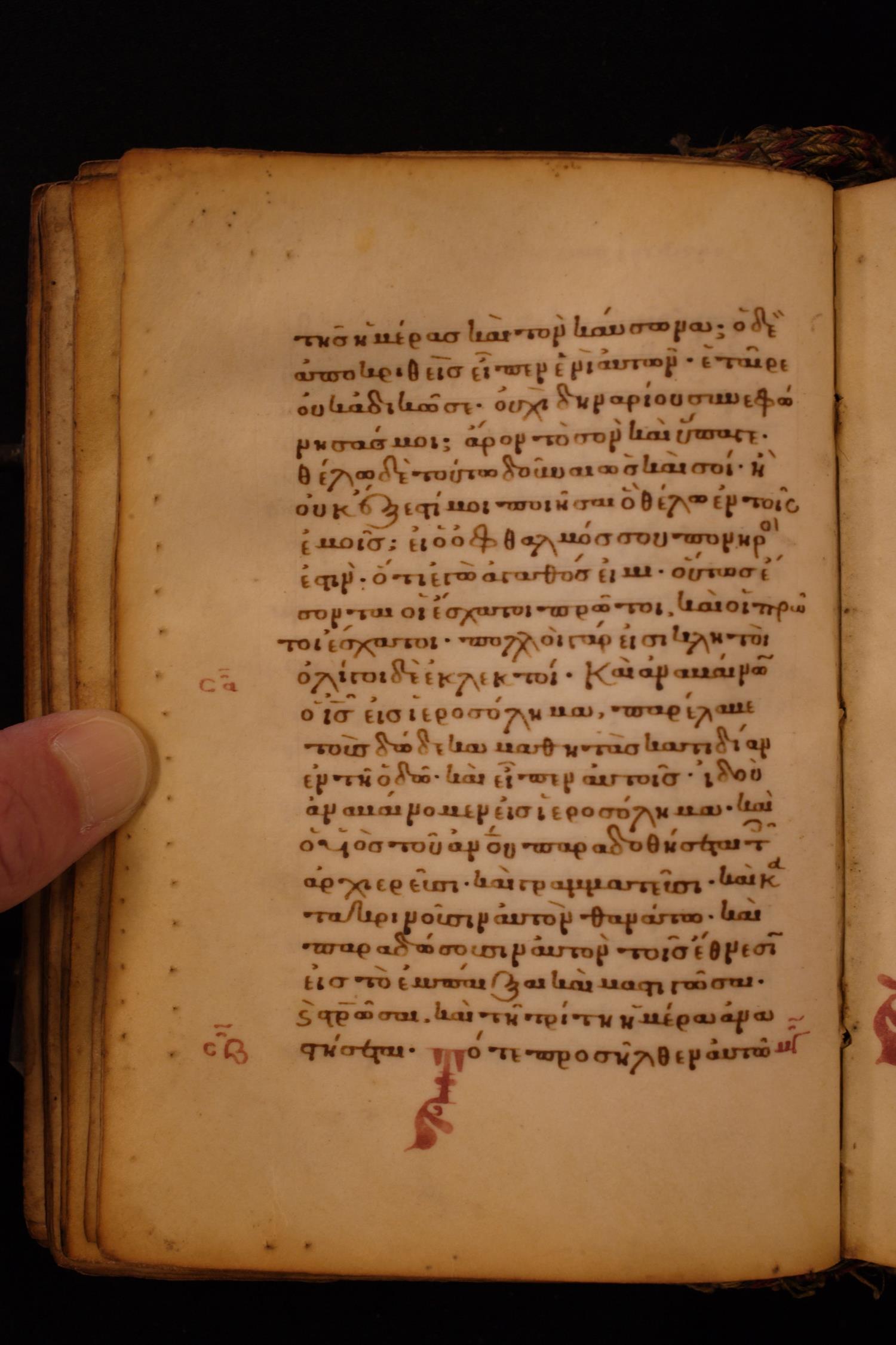 Thirteenth century minuscule of the Gospels on parchment; 256 leaves, single column, 22 lines per column.