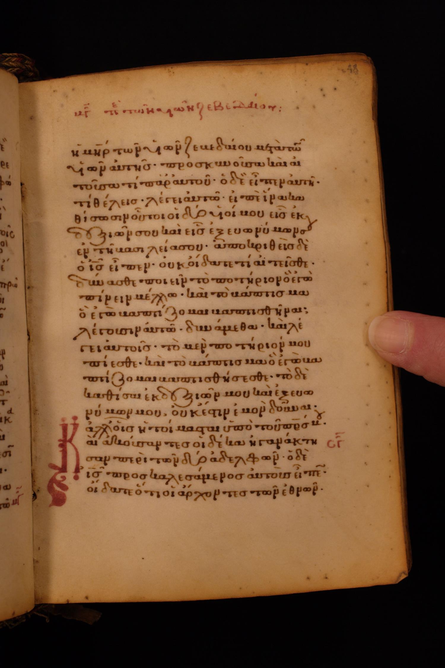 Thirteenth century minuscule of the Gospels on parchment; 256 leaves, single column, 22 lines per column.