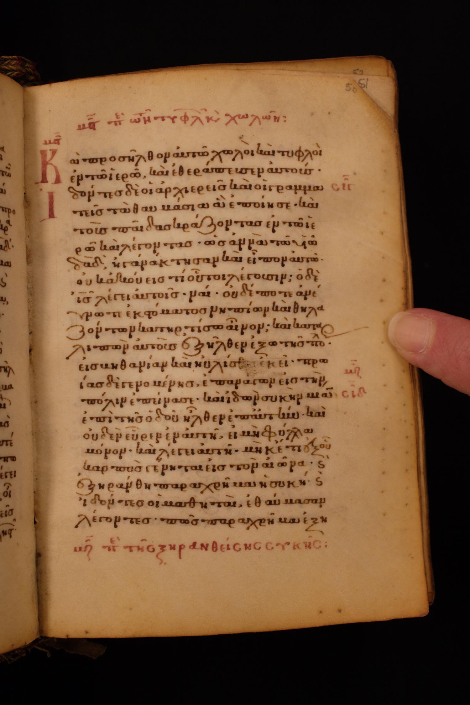 Thirteenth century minuscule of the Gospels on parchment; 256 leaves, single column, 22 lines per column.