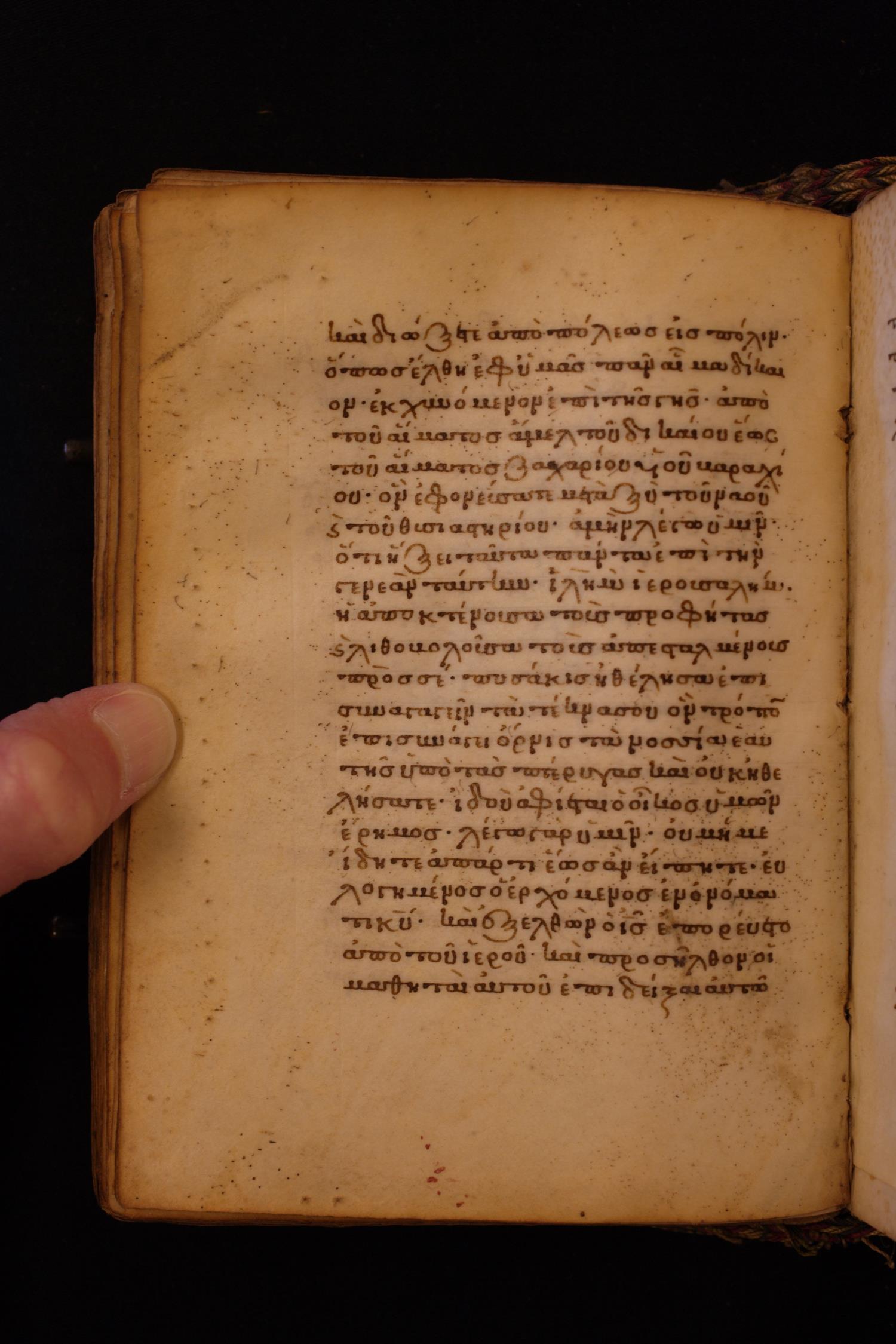 Thirteenth century minuscule of the Gospels on parchment; 256 leaves, single column, 22 lines per column.