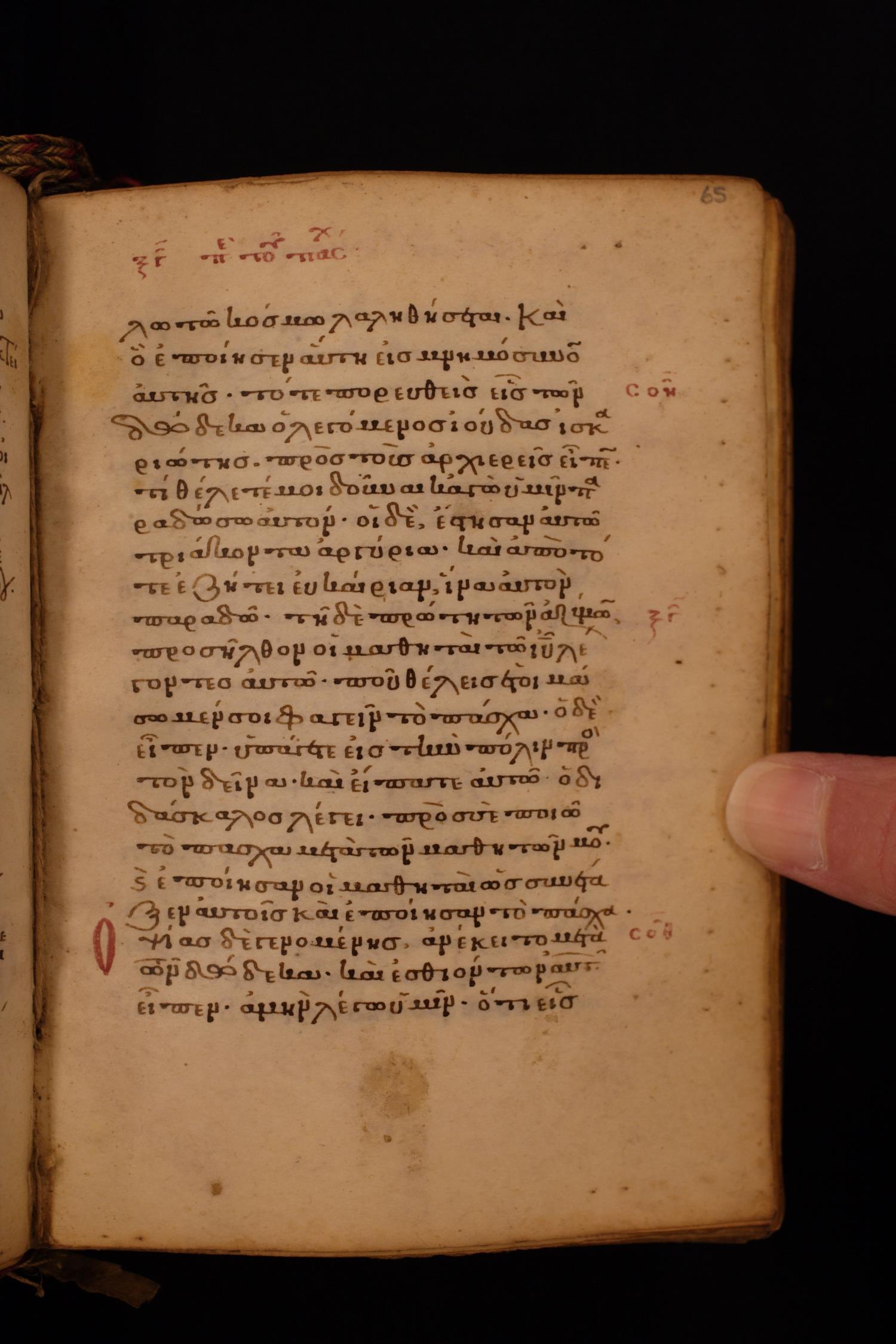 Thirteenth century minuscule of the Gospels on parchment; 256 leaves, single column, 22 lines per column.