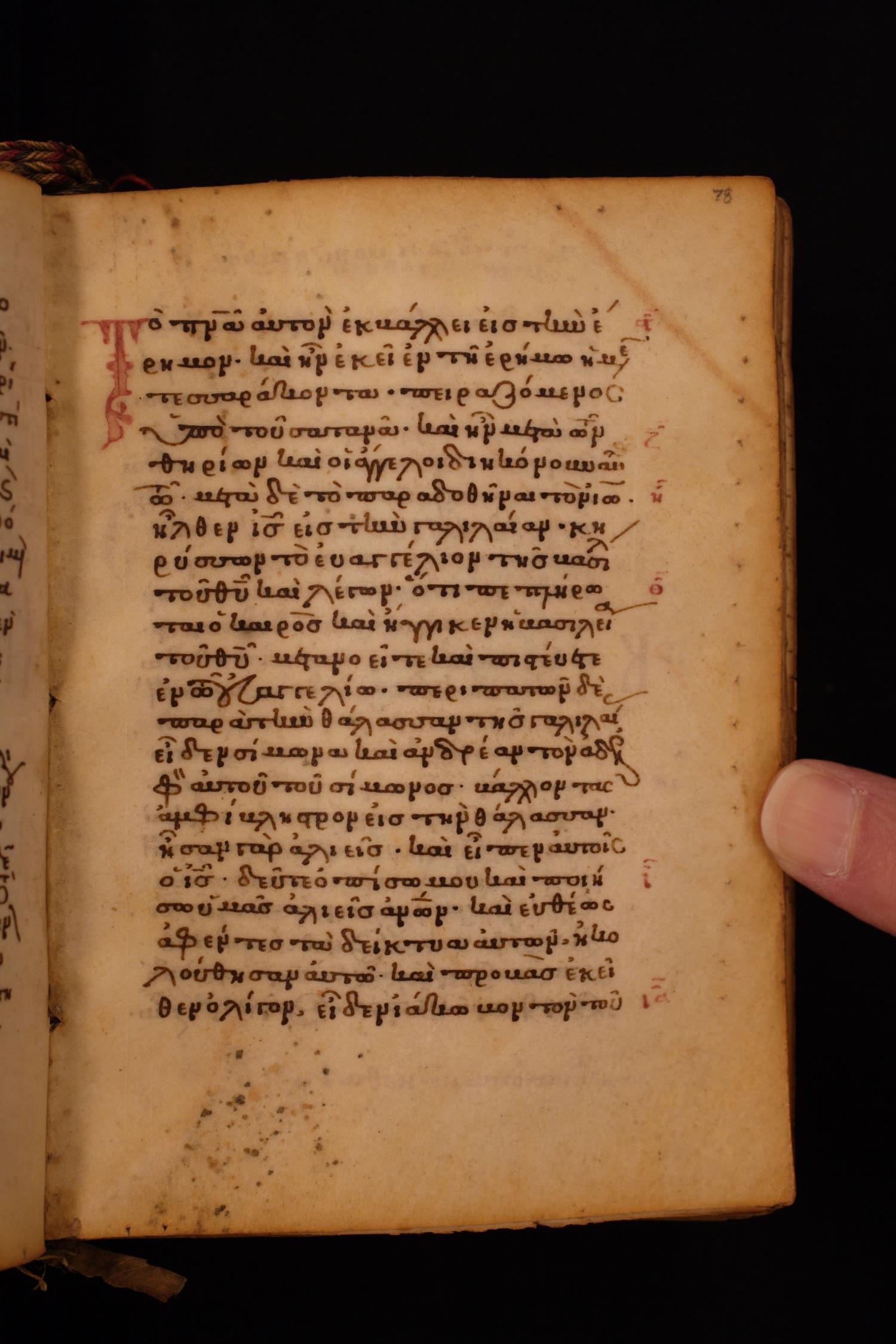 Thirteenth century minuscule of the Gospels on parchment; 256 leaves, single column, 22 lines per column.