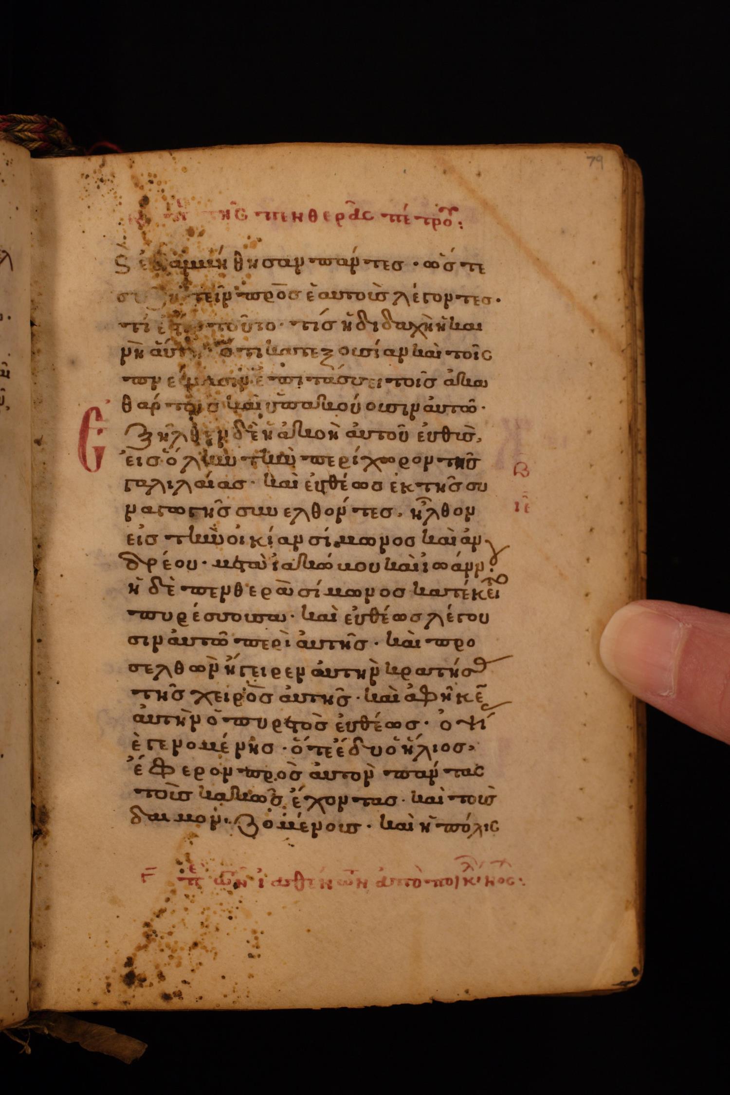 Thirteenth century minuscule of the Gospels on parchment; 256 leaves, single column, 22 lines per column.