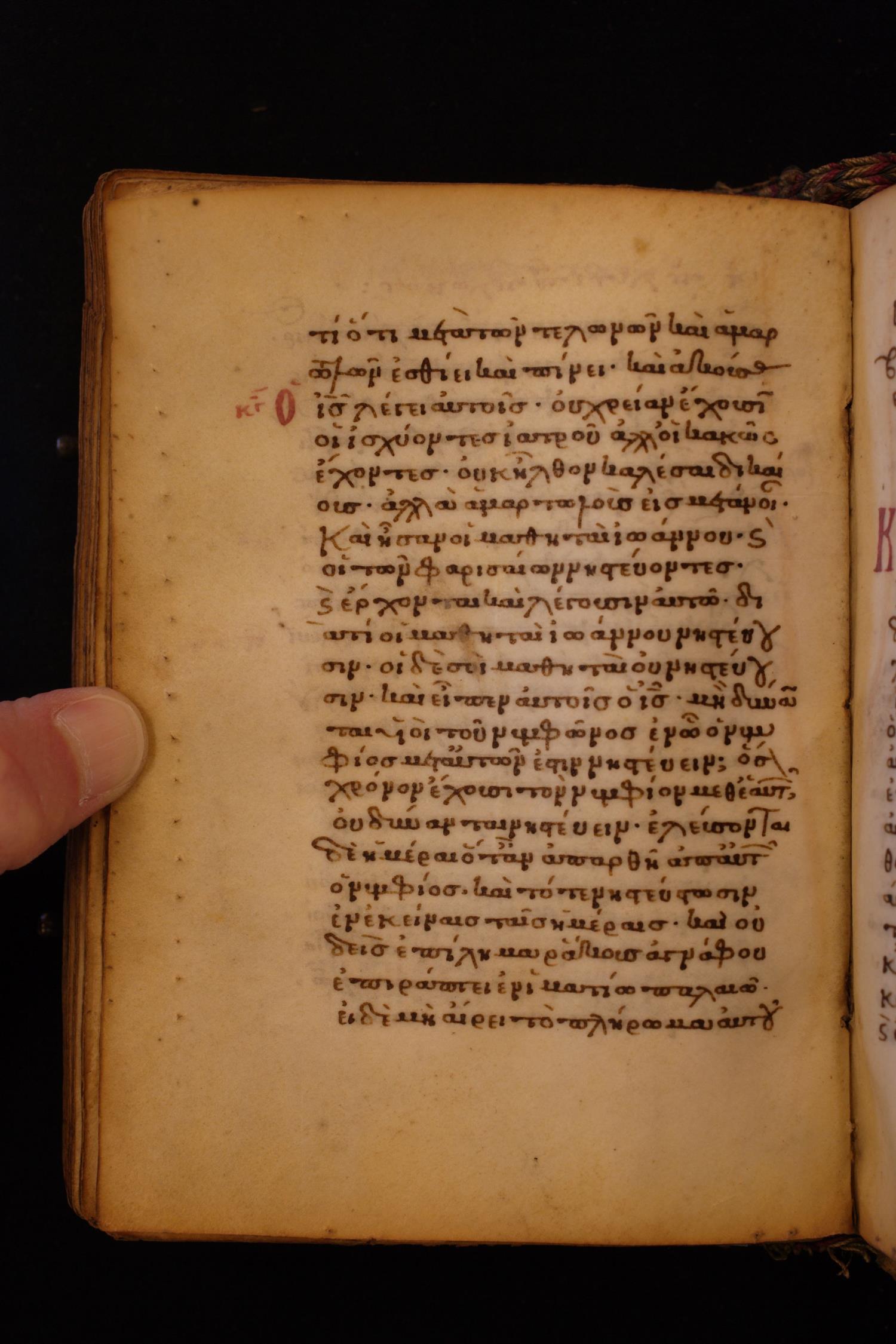 Thirteenth century minuscule of the Gospels on parchment; 256 leaves, single column, 22 lines per column.