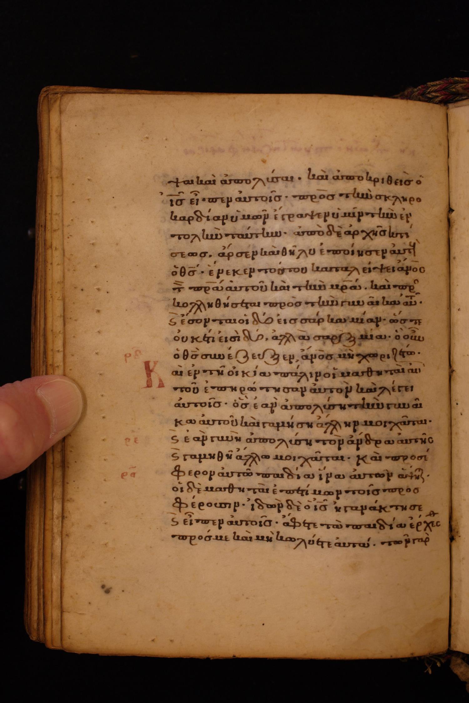 Thirteenth century minuscule of the Gospels on parchment; 256 leaves, single column, 22 lines per column.
