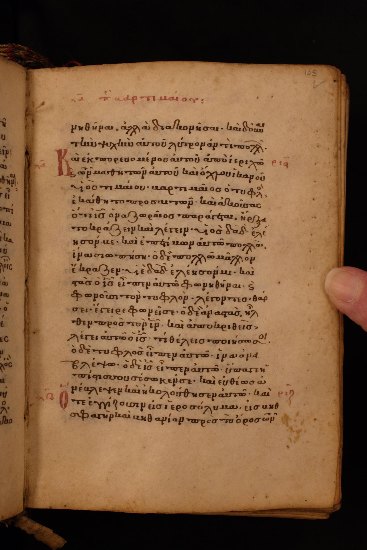 Thirteenth century minuscule of the Gospels on parchment; 256 leaves, single column, 22 lines per column.