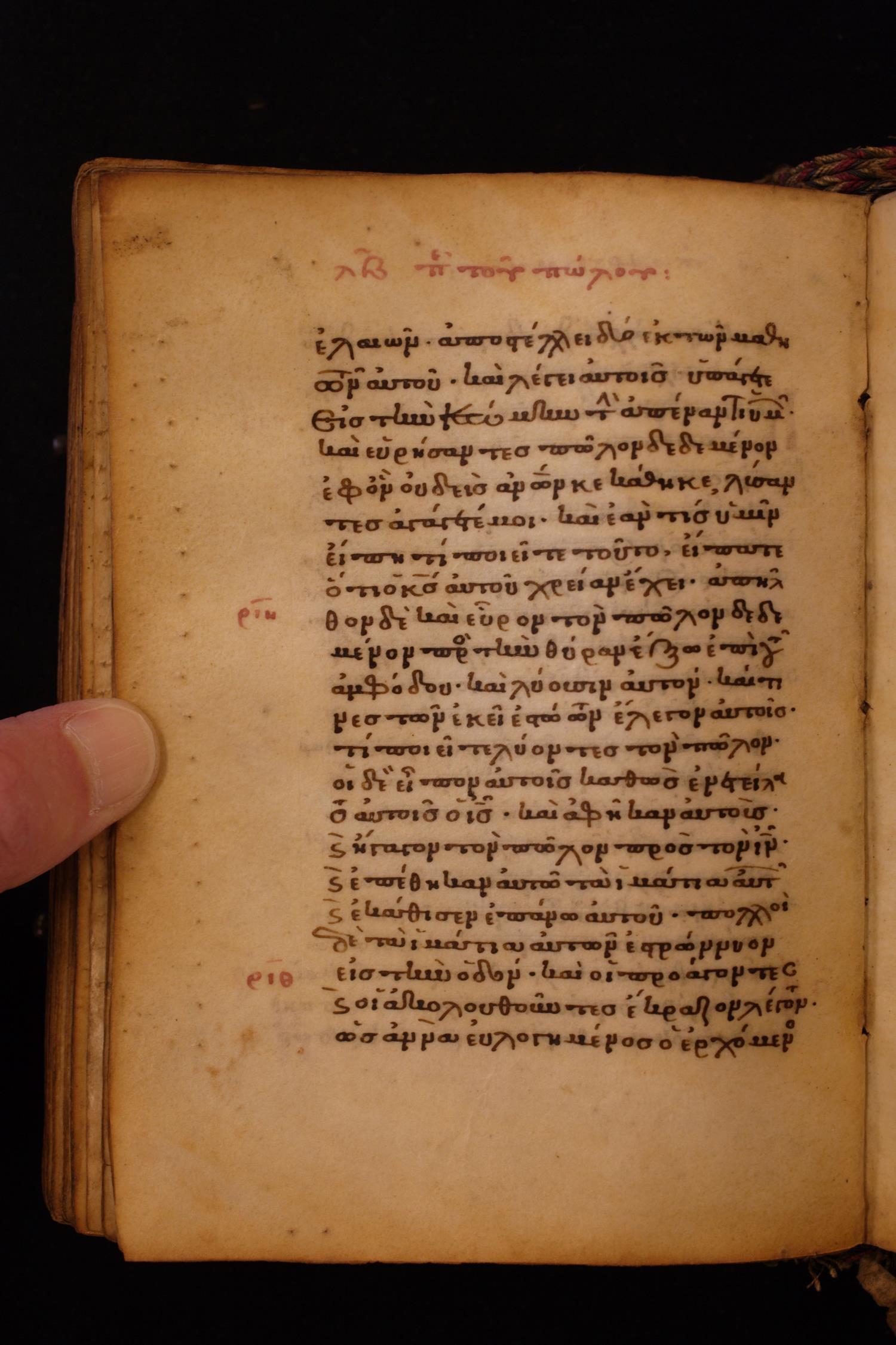Thirteenth century minuscule of the Gospels on parchment; 256 leaves, single column, 22 lines per column.
