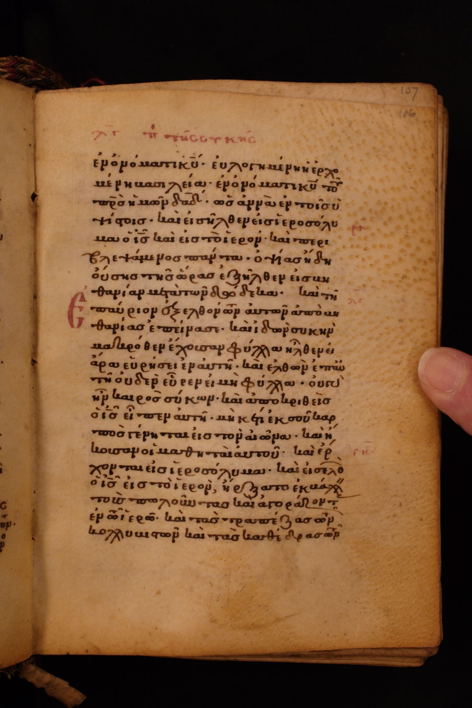 Thirteenth century minuscule of the Gospels on parchment; 256 leaves, single column, 22 lines per column.