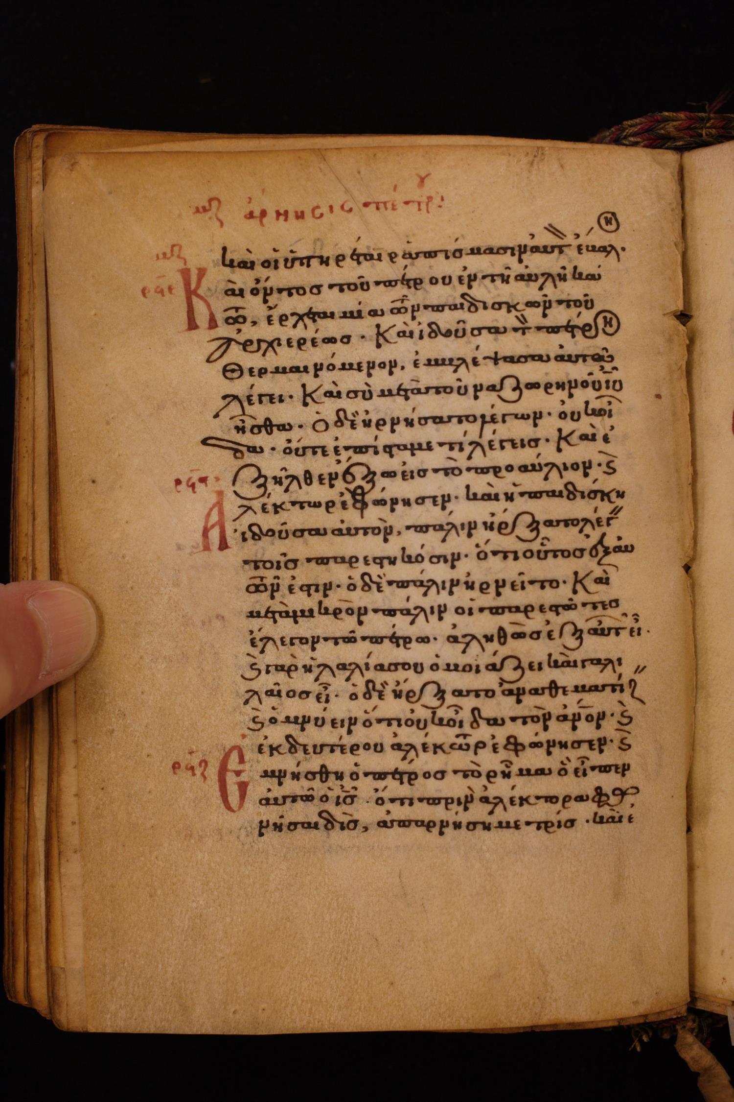 Thirteenth century minuscule of the Gospels on parchment; 256 leaves, single column, 22 lines per column.