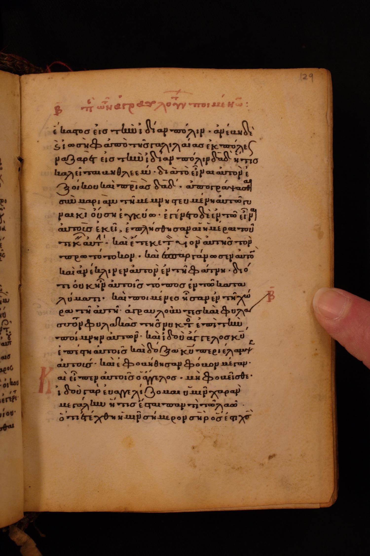 Thirteenth century minuscule of the Gospels on parchment; 256 leaves, single column, 22 lines per column.