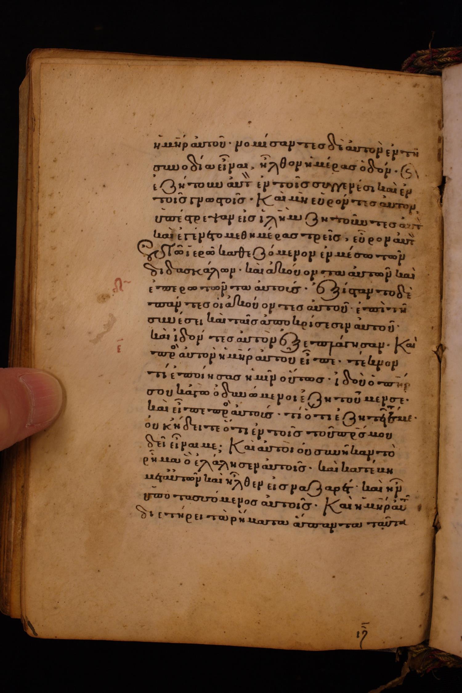 Thirteenth century minuscule of the Gospels on parchment; 256 leaves, single column, 22 lines per column.