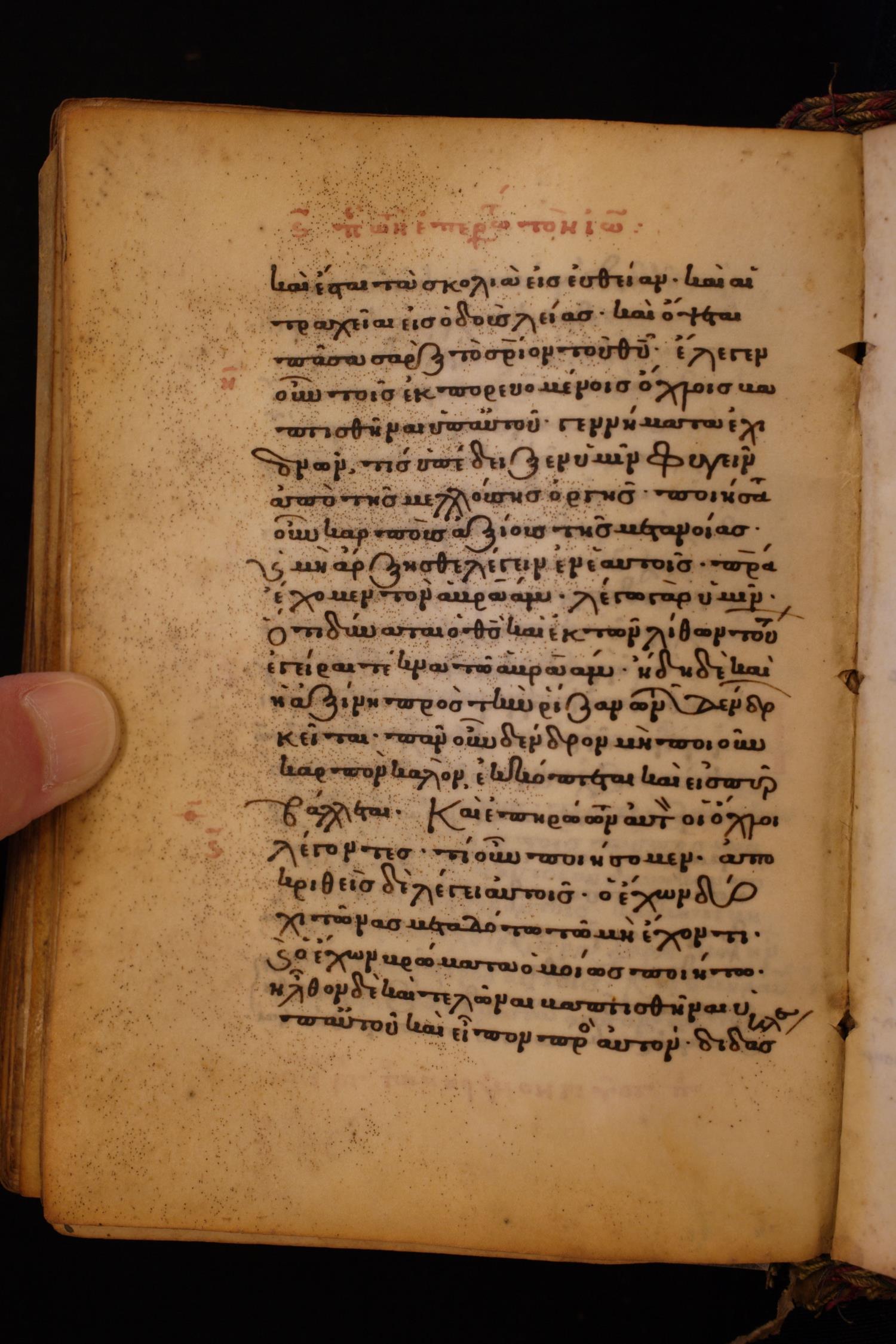 Thirteenth century minuscule of the Gospels on parchment; 256 leaves, single column, 22 lines per column.
