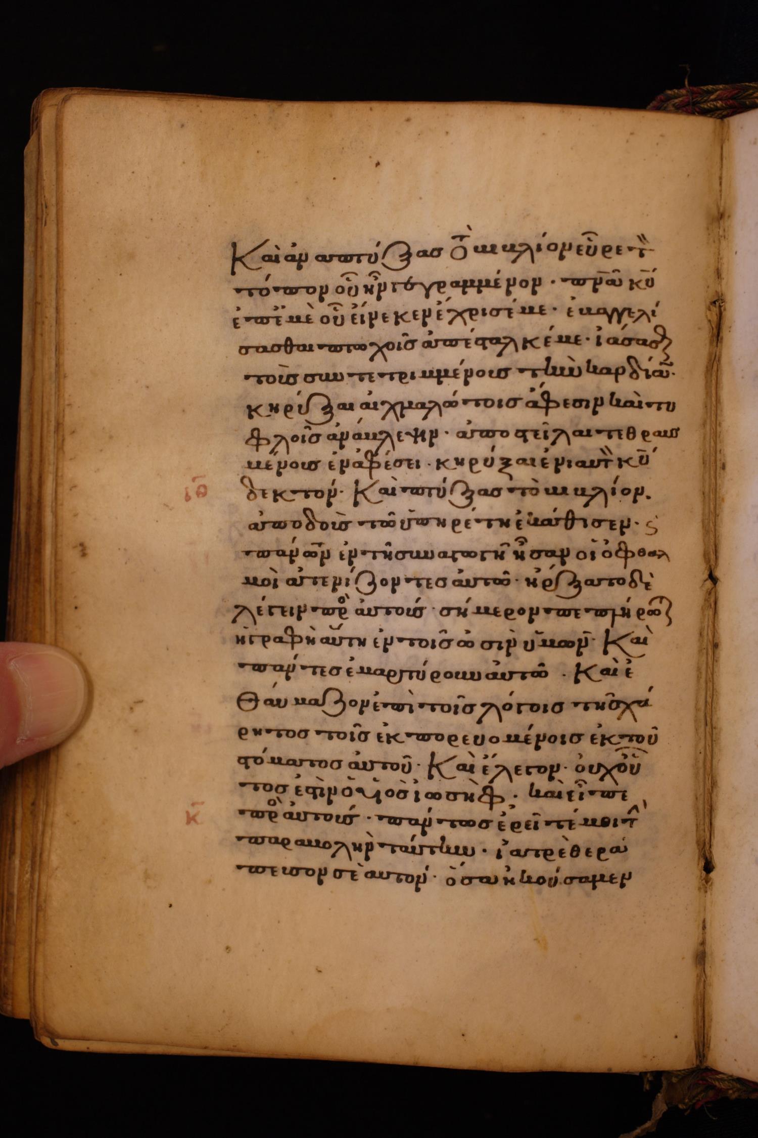 Thirteenth century minuscule of the Gospels on parchment; 256 leaves, single column, 22 lines per column.