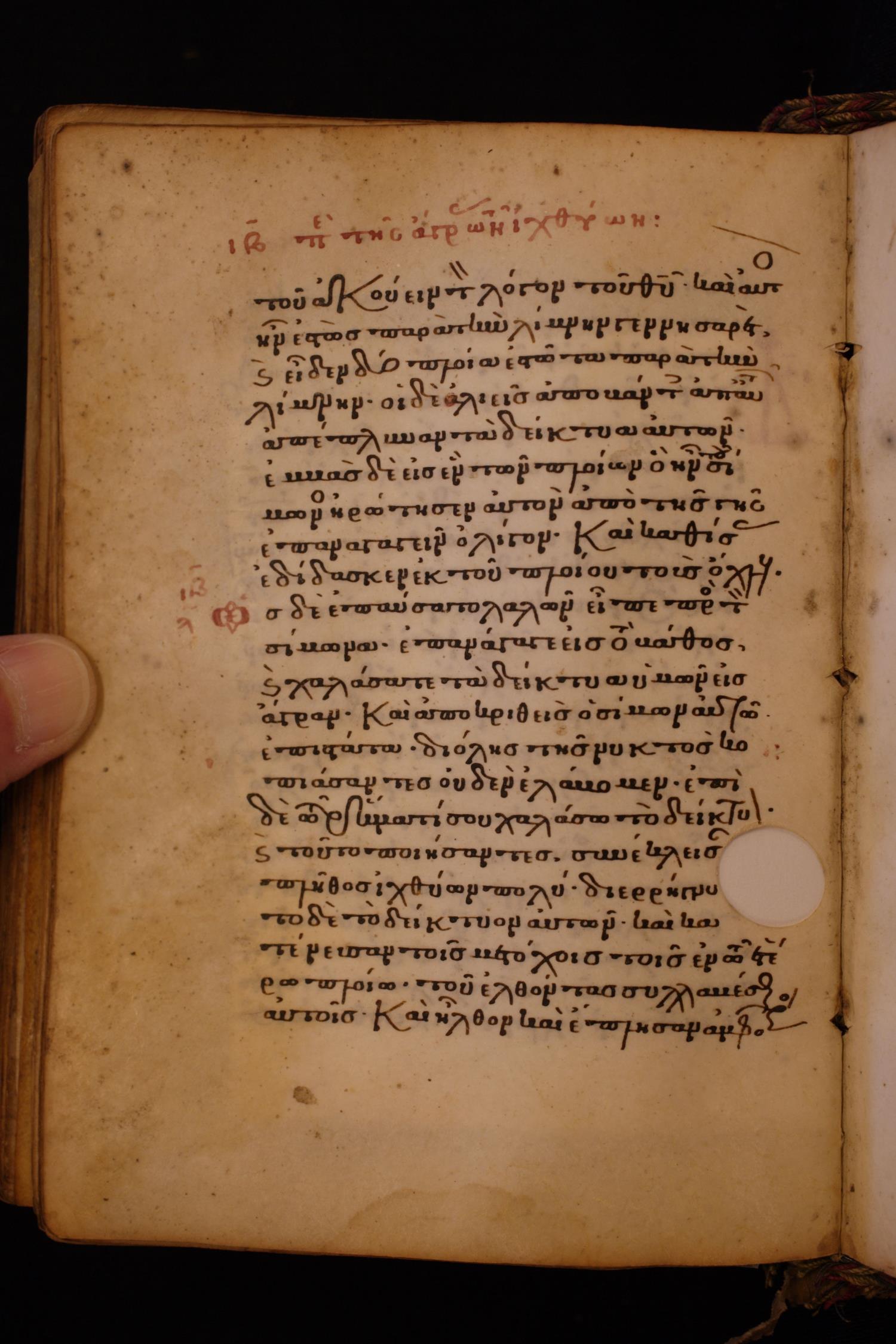 Thirteenth century minuscule of the Gospels on parchment; 256 leaves, single column, 22 lines per column.