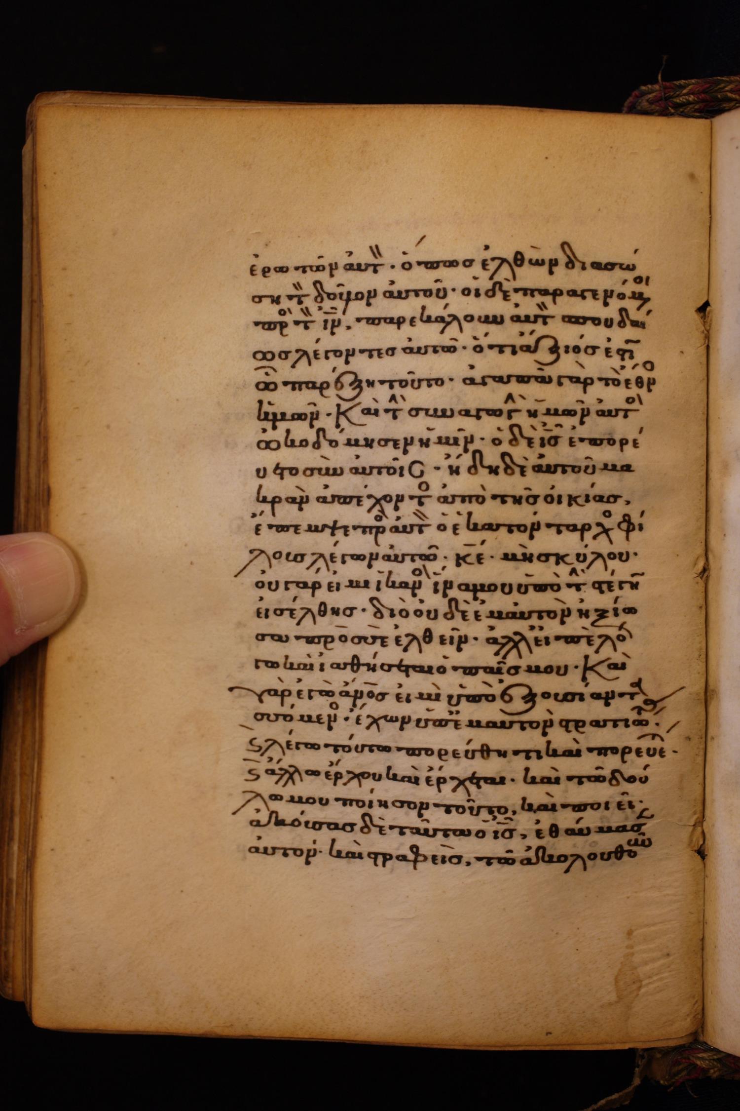 Thirteenth century minuscule of the Gospels on parchment; 256 leaves, single column, 22 lines per column.