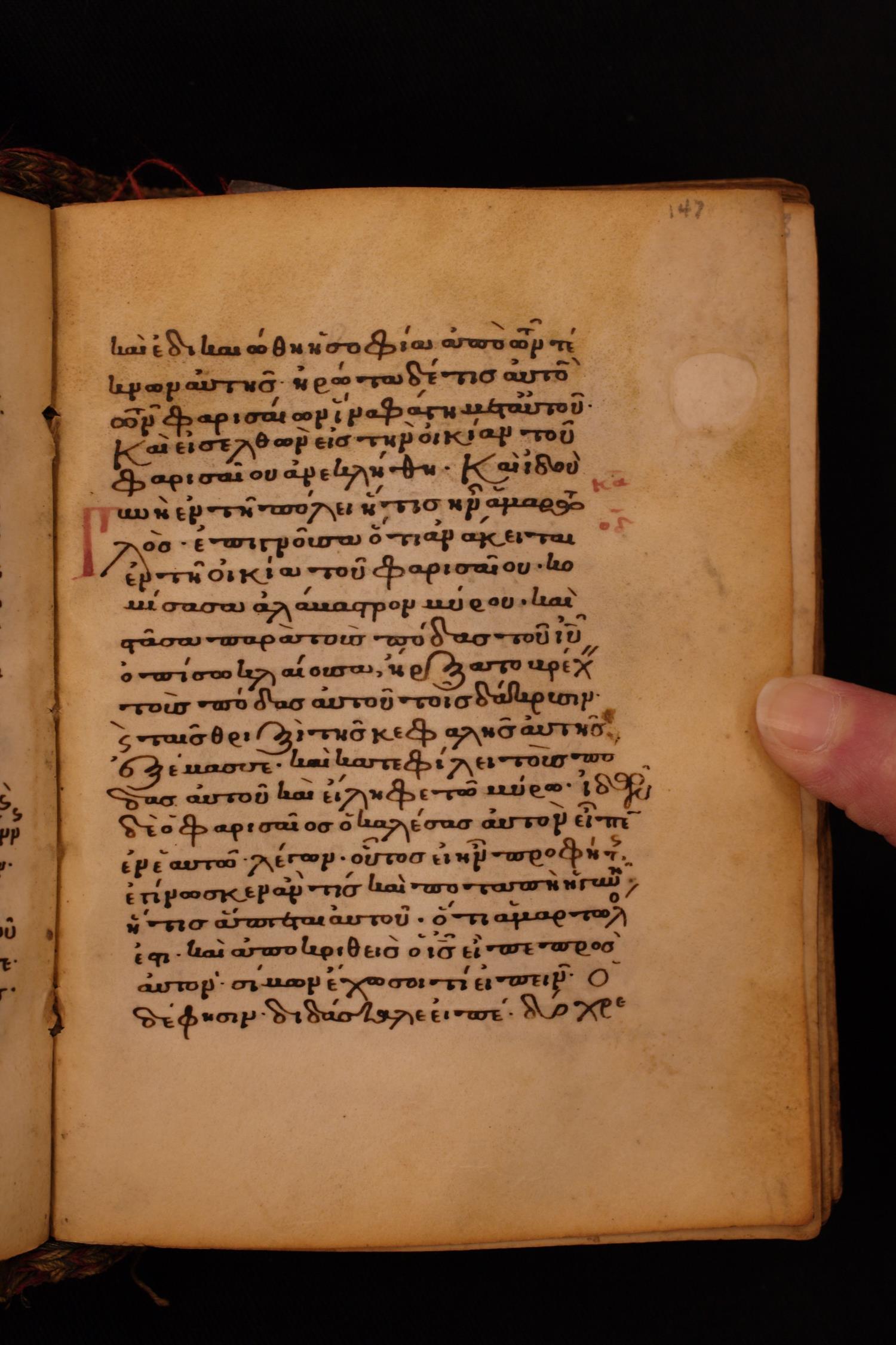Thirteenth century minuscule of the Gospels on parchment; 256 leaves, single column, 22 lines per column.