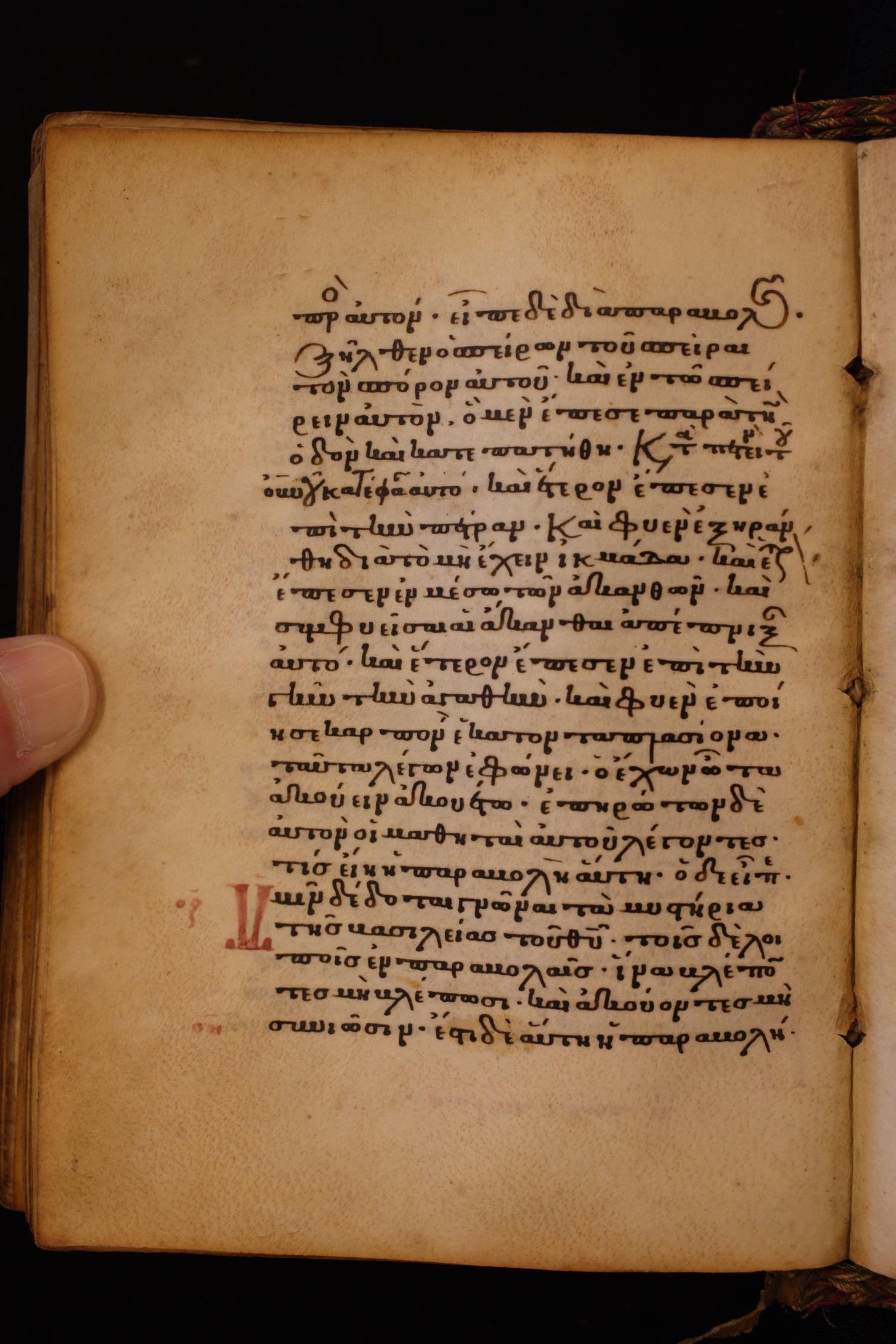 Thirteenth century minuscule of the Gospels on parchment; 256 leaves, single column, 22 lines per column.