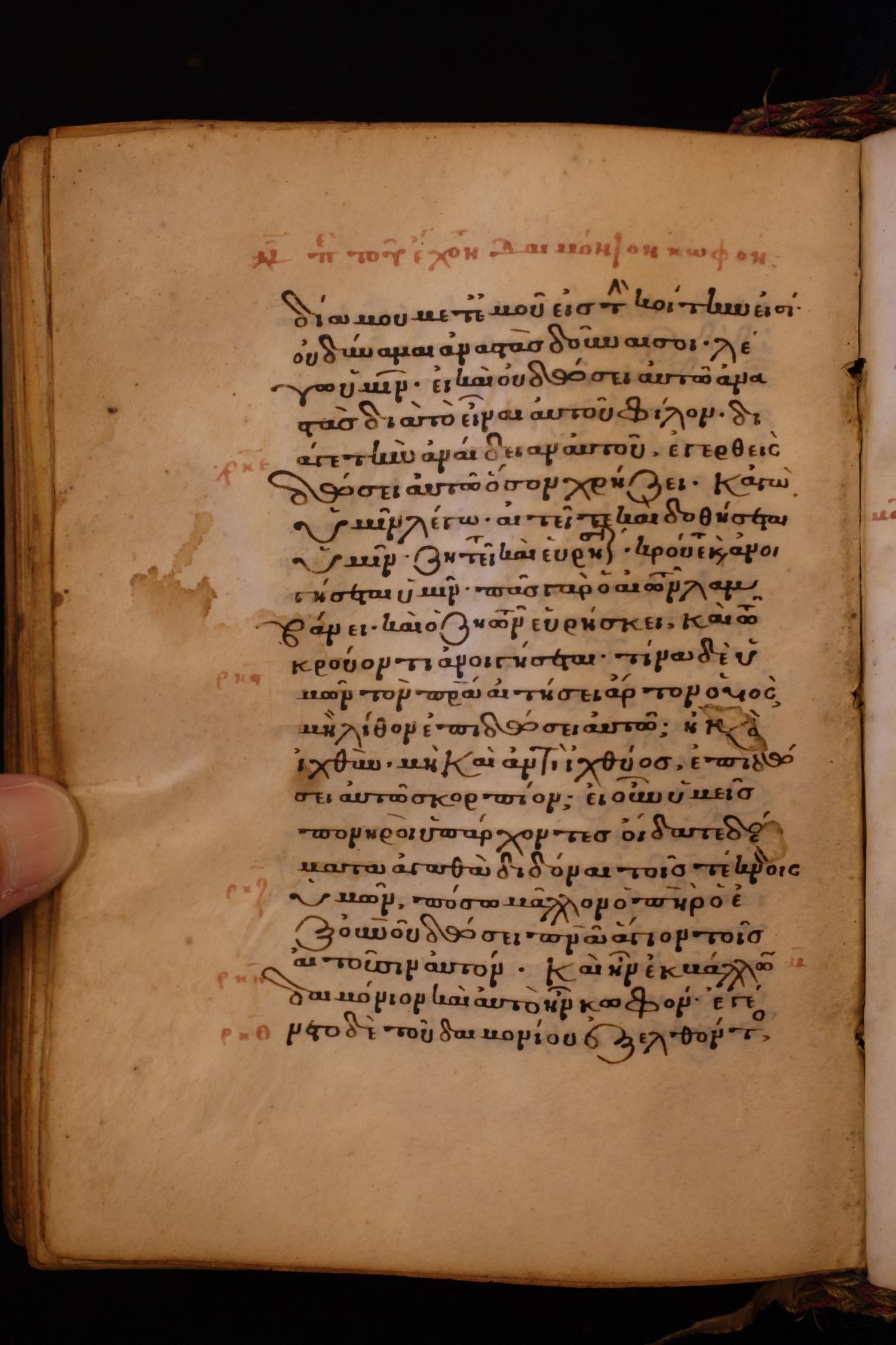 Thirteenth century minuscule of the Gospels on parchment; 256 leaves, single column, 22 lines per column.