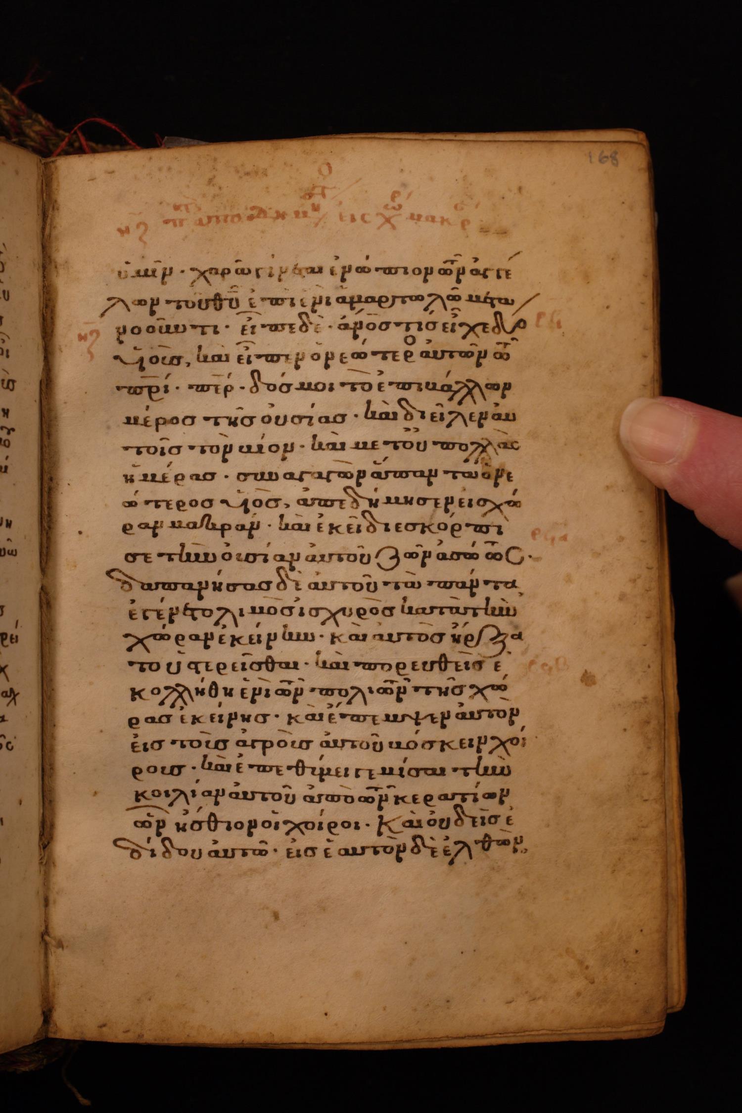 Thirteenth century minuscule of the Gospels on parchment; 256 leaves, single column, 22 lines per column.