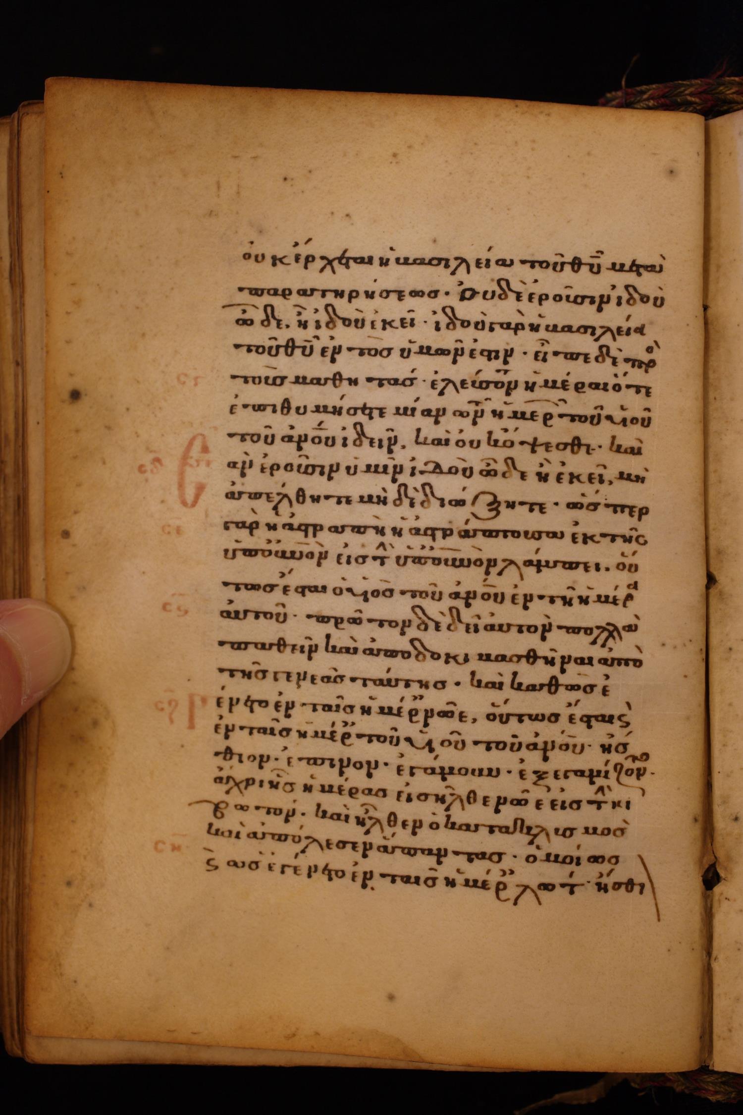 Thirteenth century minuscule of the Gospels on parchment; 256 leaves, single column, 22 lines per column.