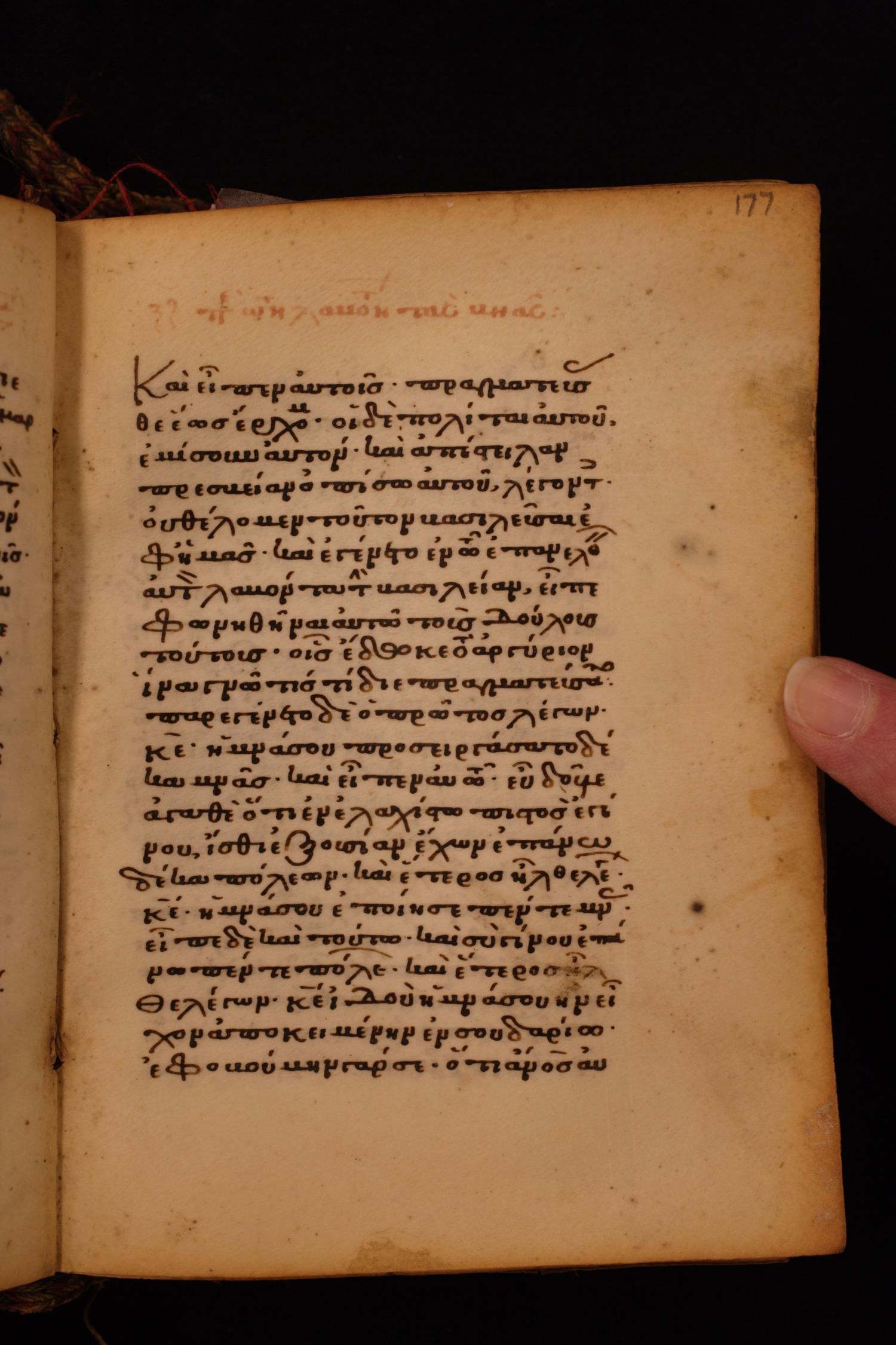 Thirteenth century minuscule of the Gospels on parchment; 256 leaves, single column, 22 lines per column.