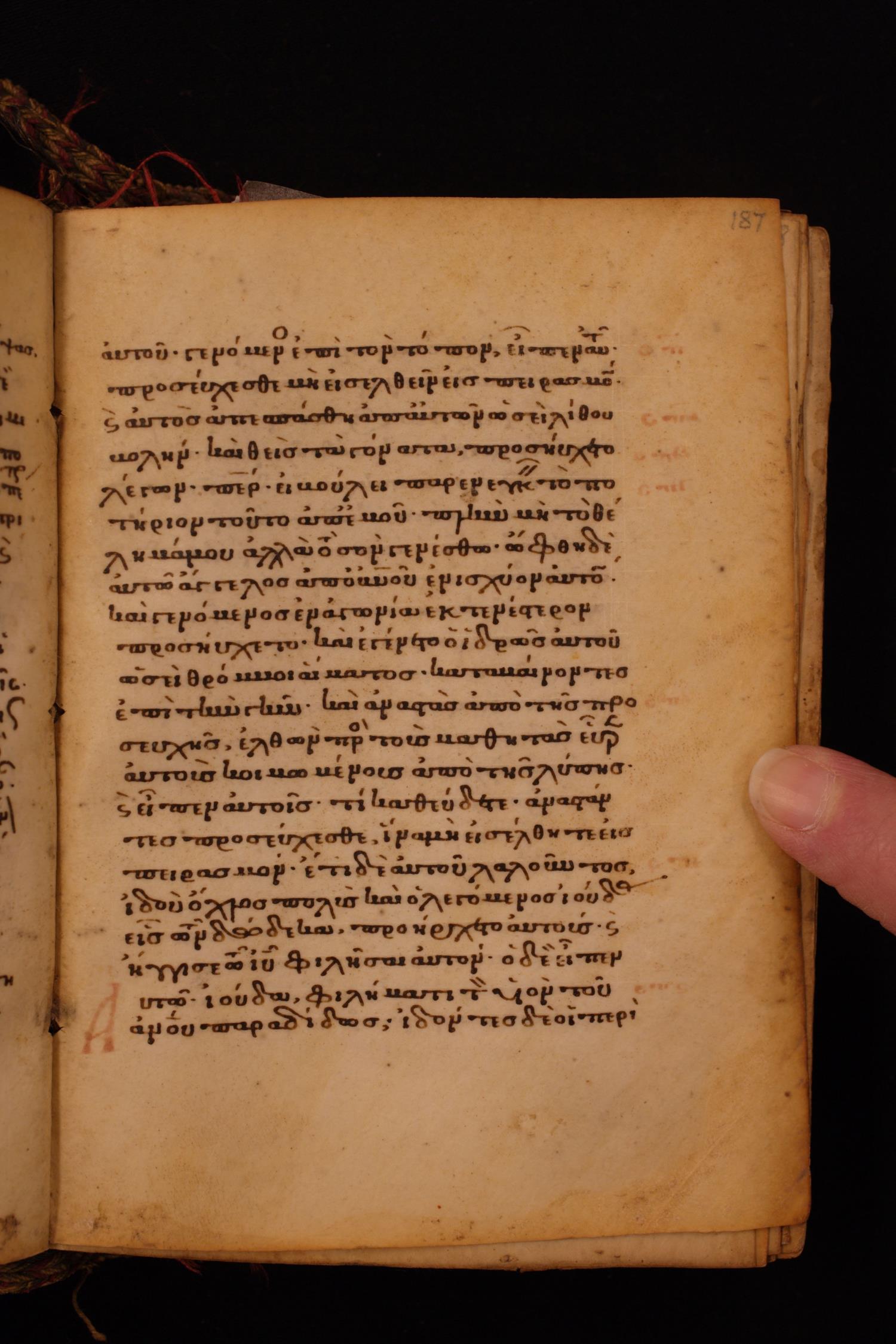 Thirteenth century minuscule of the Gospels on parchment; 256 leaves, single column, 22 lines per column.