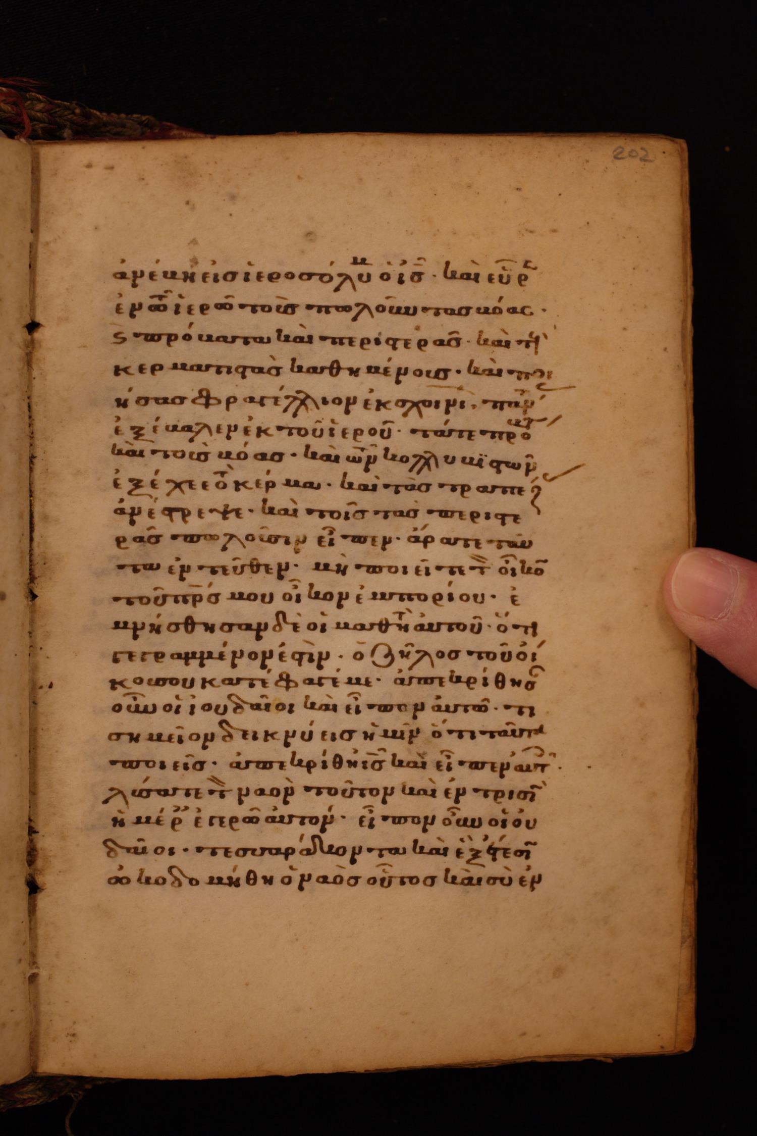 Thirteenth century minuscule of the Gospels on parchment; 256 leaves, single column, 22 lines per column.