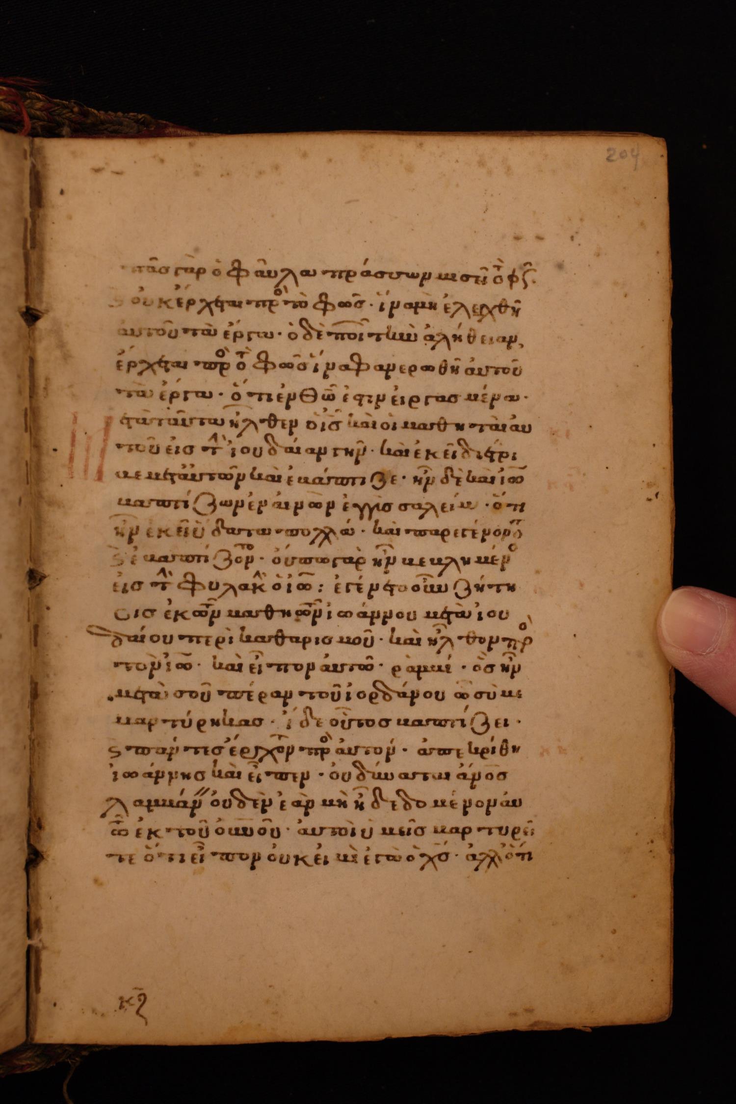 Thirteenth century minuscule of the Gospels on parchment; 256 leaves, single column, 22 lines per column.