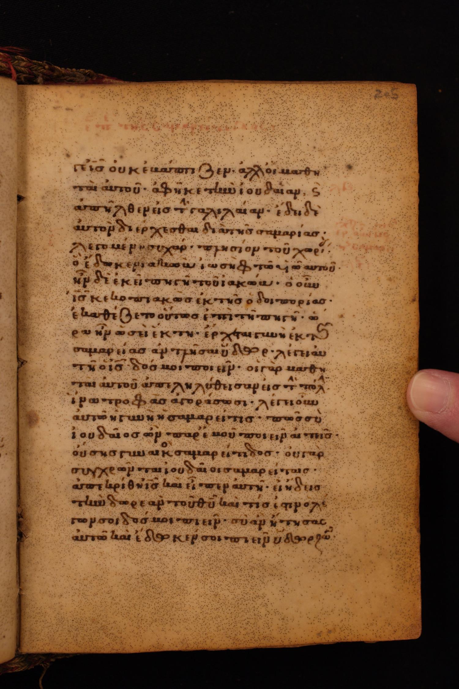 Thirteenth century minuscule of the Gospels on parchment; 256 leaves, single column, 22 lines per column.