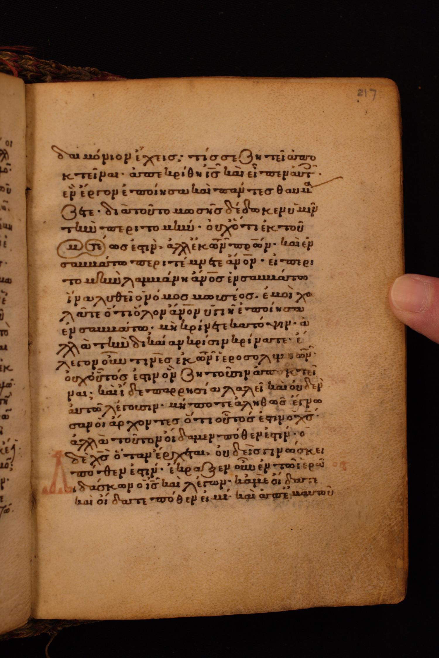 Thirteenth century minuscule of the Gospels on parchment; 256 leaves, single column, 22 lines per column.