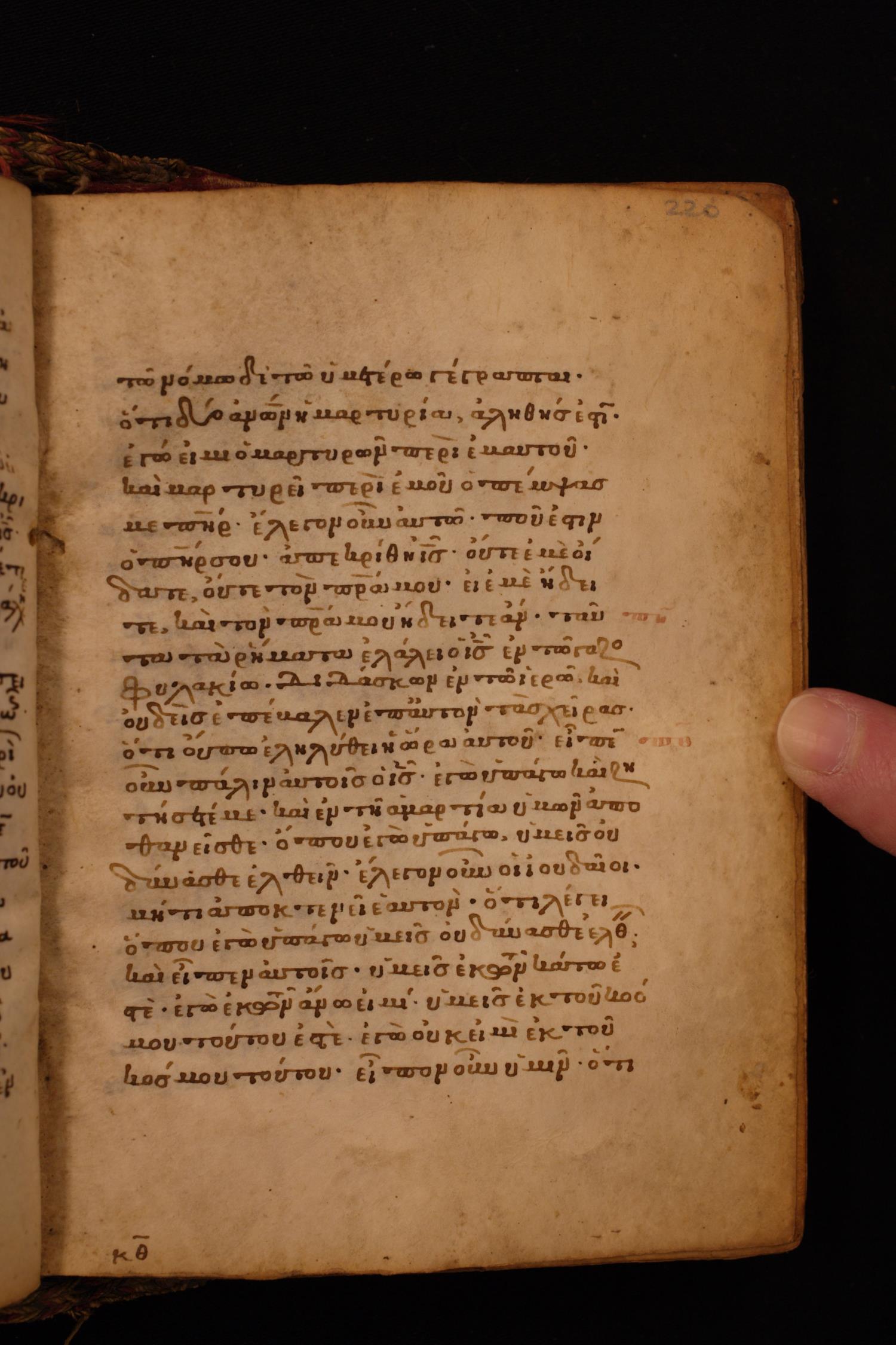 Thirteenth century minuscule of the Gospels on parchment; 256 leaves, single column, 22 lines per column.