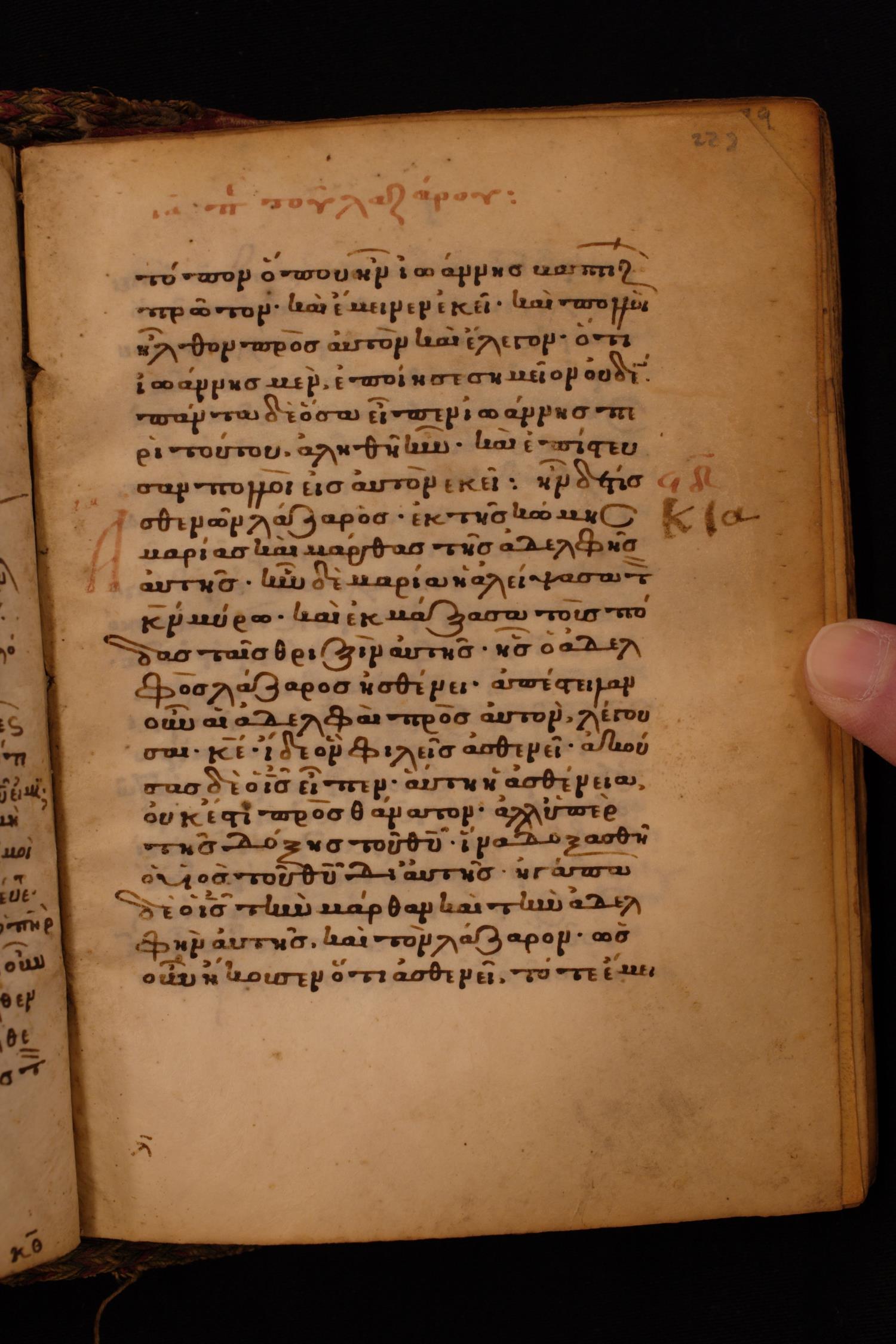 Thirteenth century minuscule of the Gospels on parchment; 256 leaves, single column, 22 lines per column.