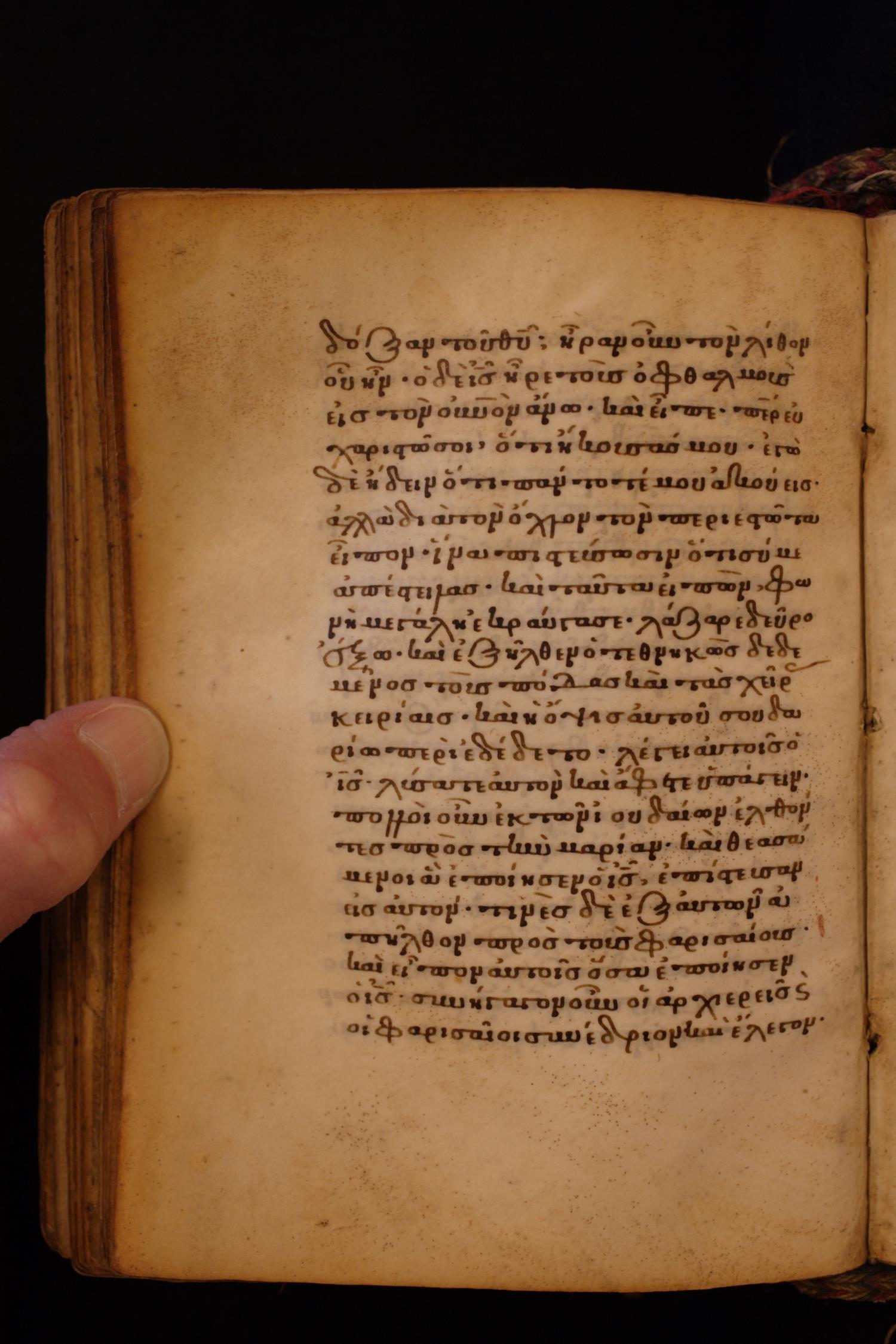 Thirteenth century minuscule of the Gospels on parchment; 256 leaves, single column, 22 lines per column.