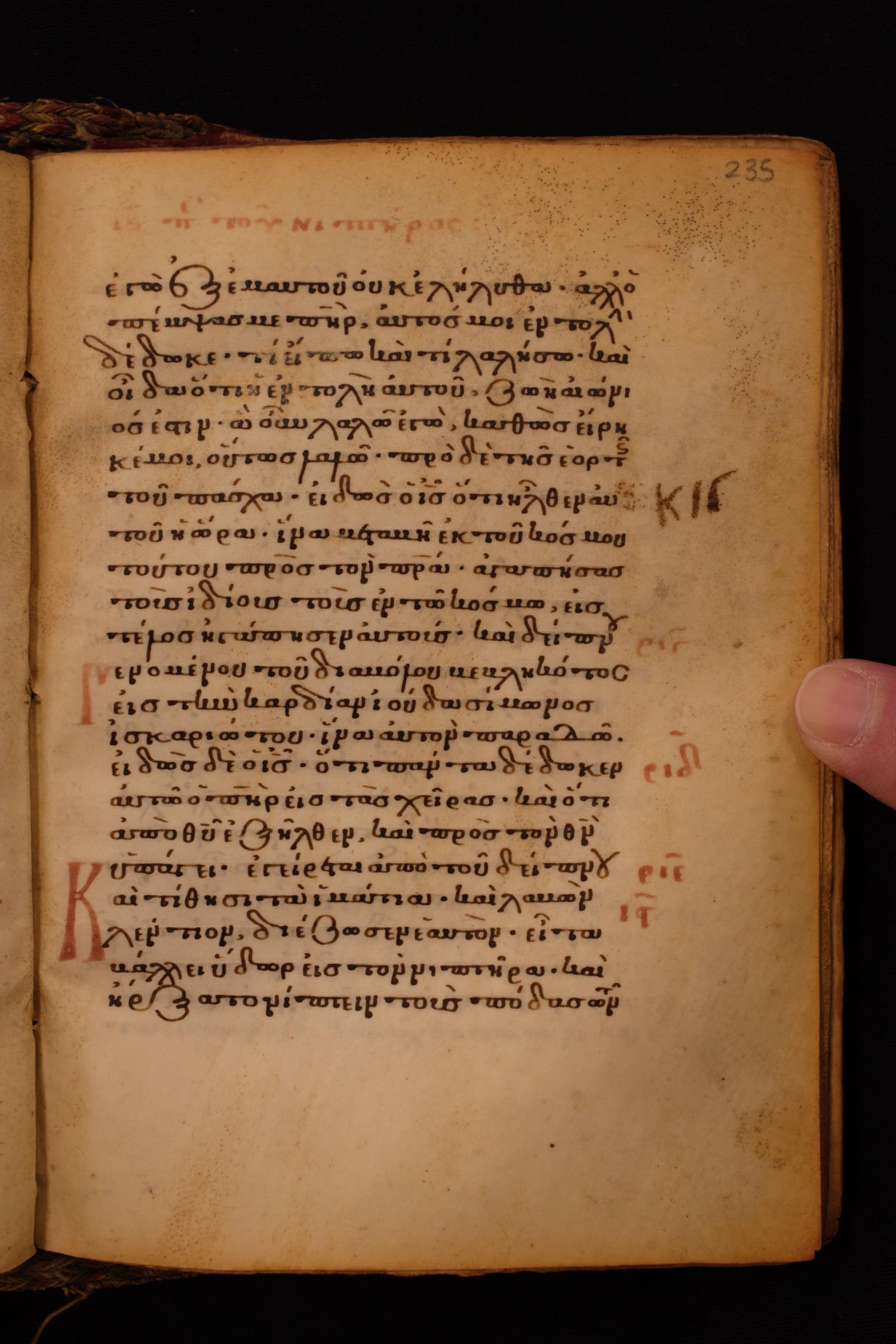 Thirteenth century minuscule of the Gospels on parchment; 256 leaves, single column, 22 lines per column.