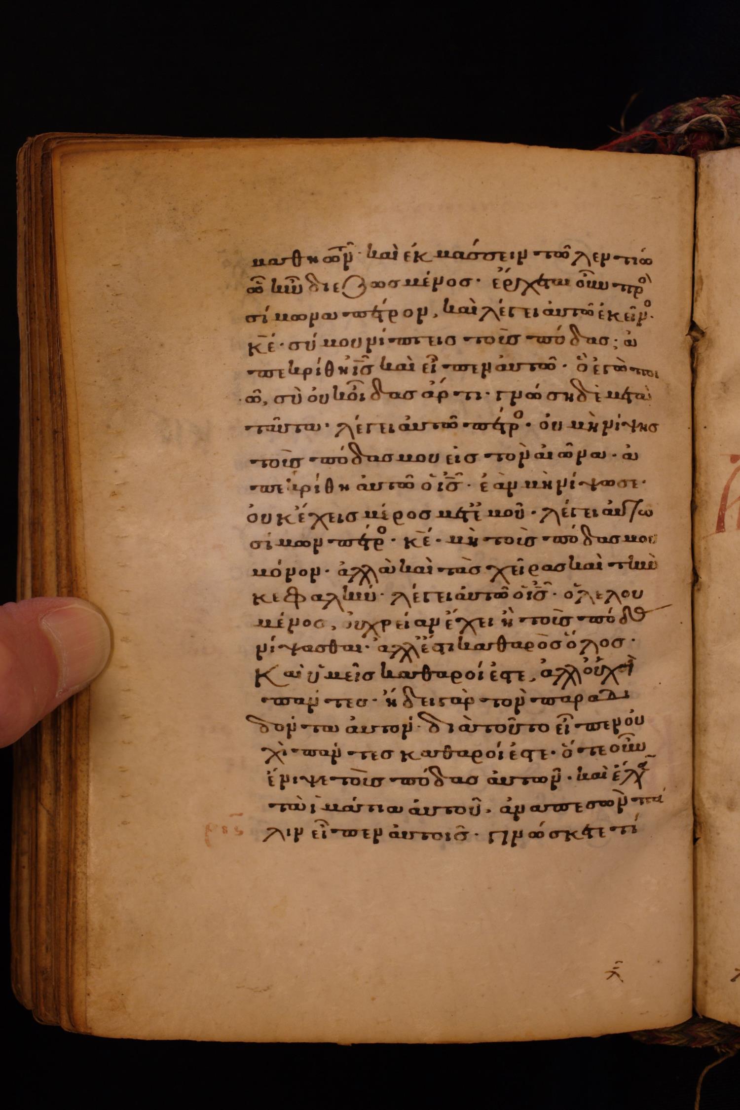 Thirteenth century minuscule of the Gospels on parchment; 256 leaves, single column, 22 lines per column.