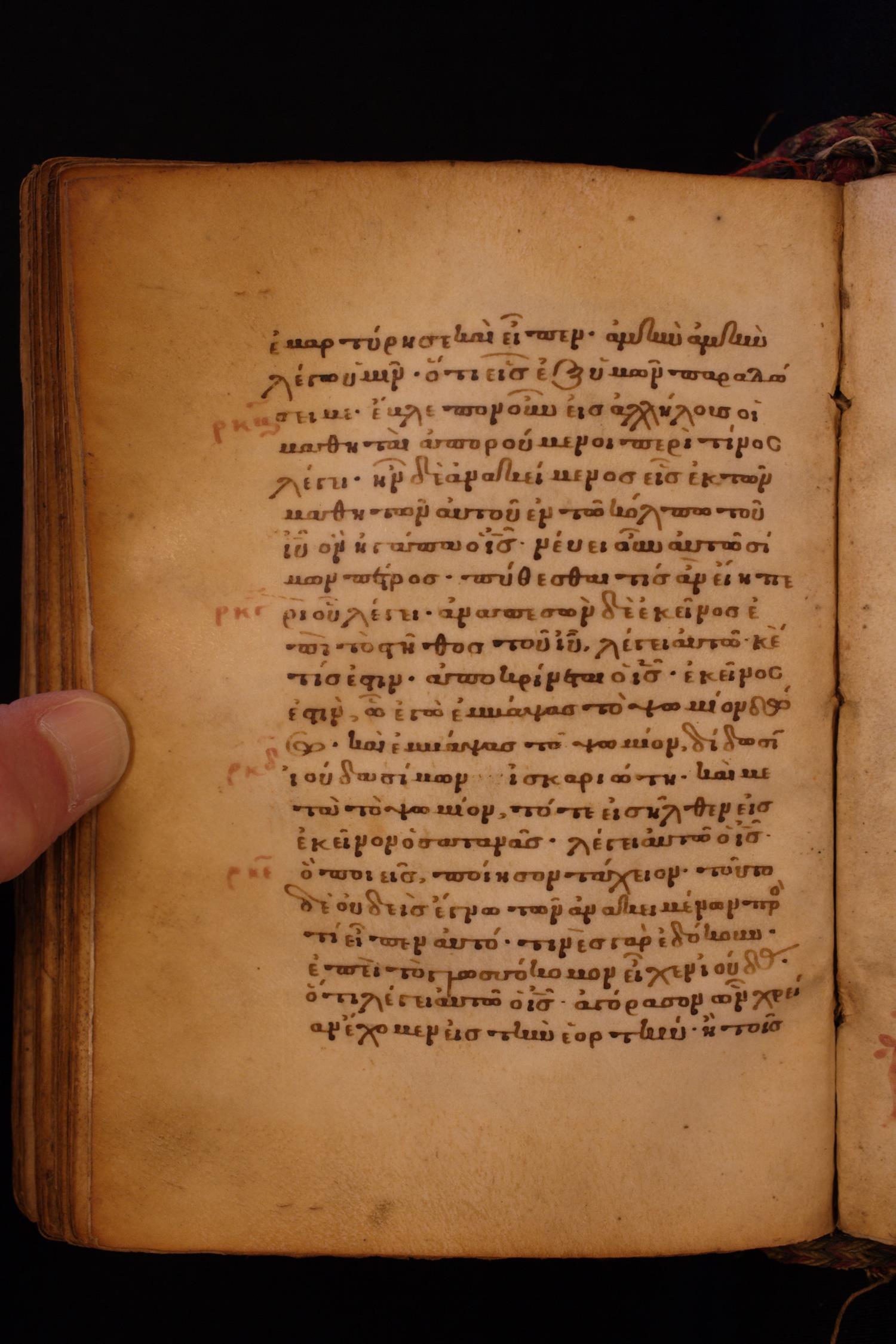 Thirteenth century minuscule of the Gospels on parchment; 256 leaves, single column, 22 lines per column.