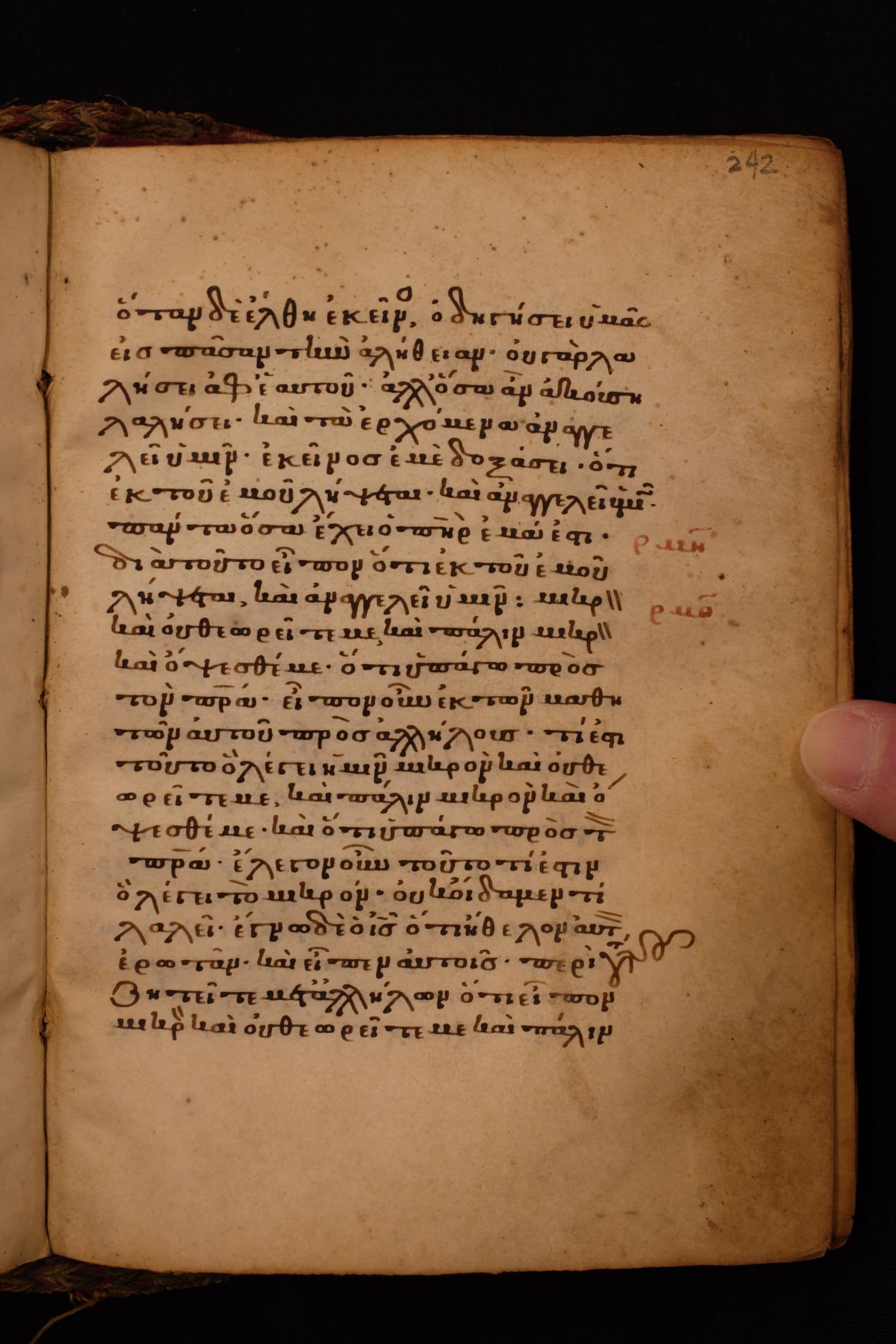 Thirteenth century minuscule of the Gospels on parchment; 256 leaves, single column, 22 lines per column.