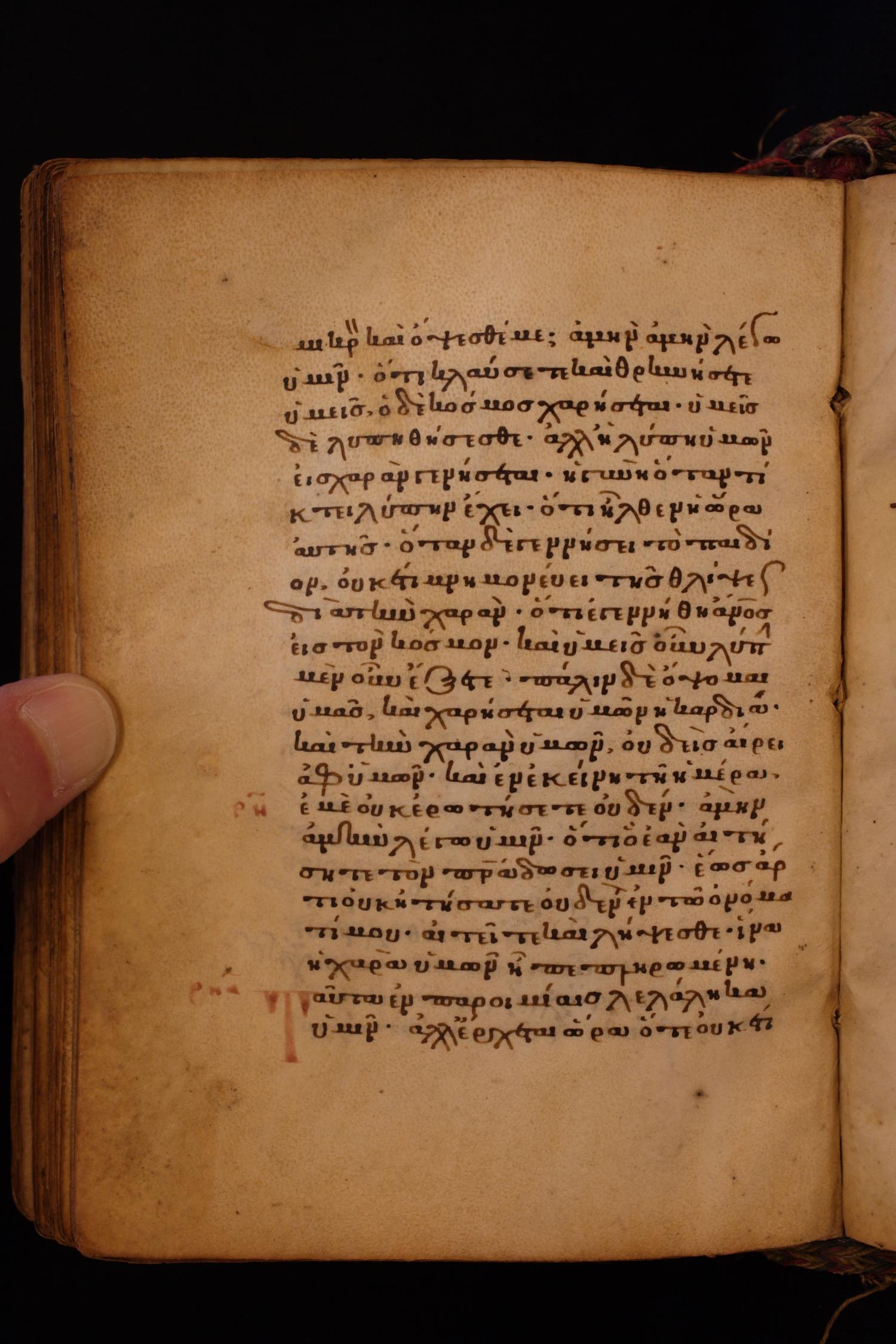 Thirteenth century minuscule of the Gospels on parchment; 256 leaves, single column, 22 lines per column.