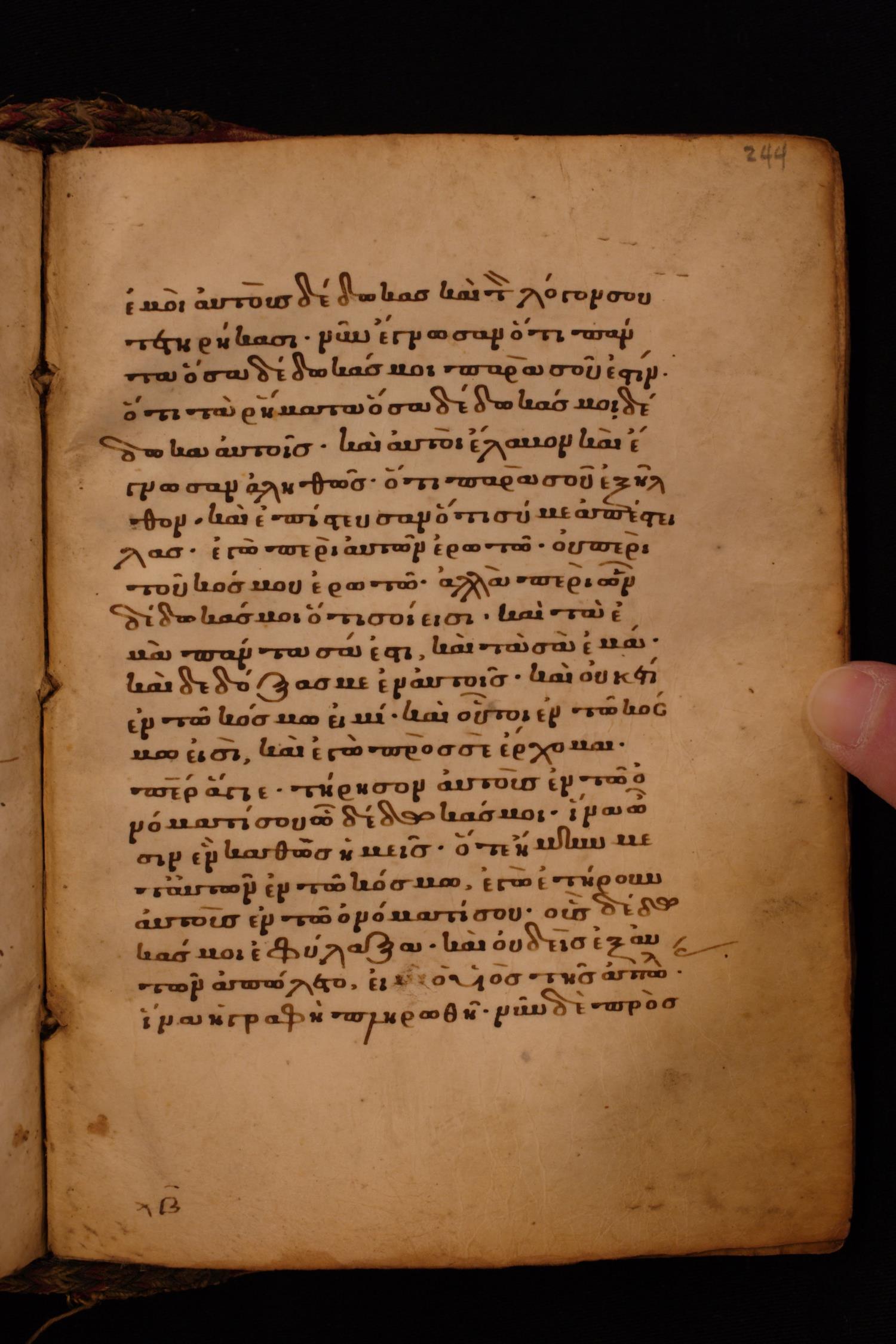 Thirteenth century minuscule of the Gospels on parchment; 256 leaves, single column, 22 lines per column.