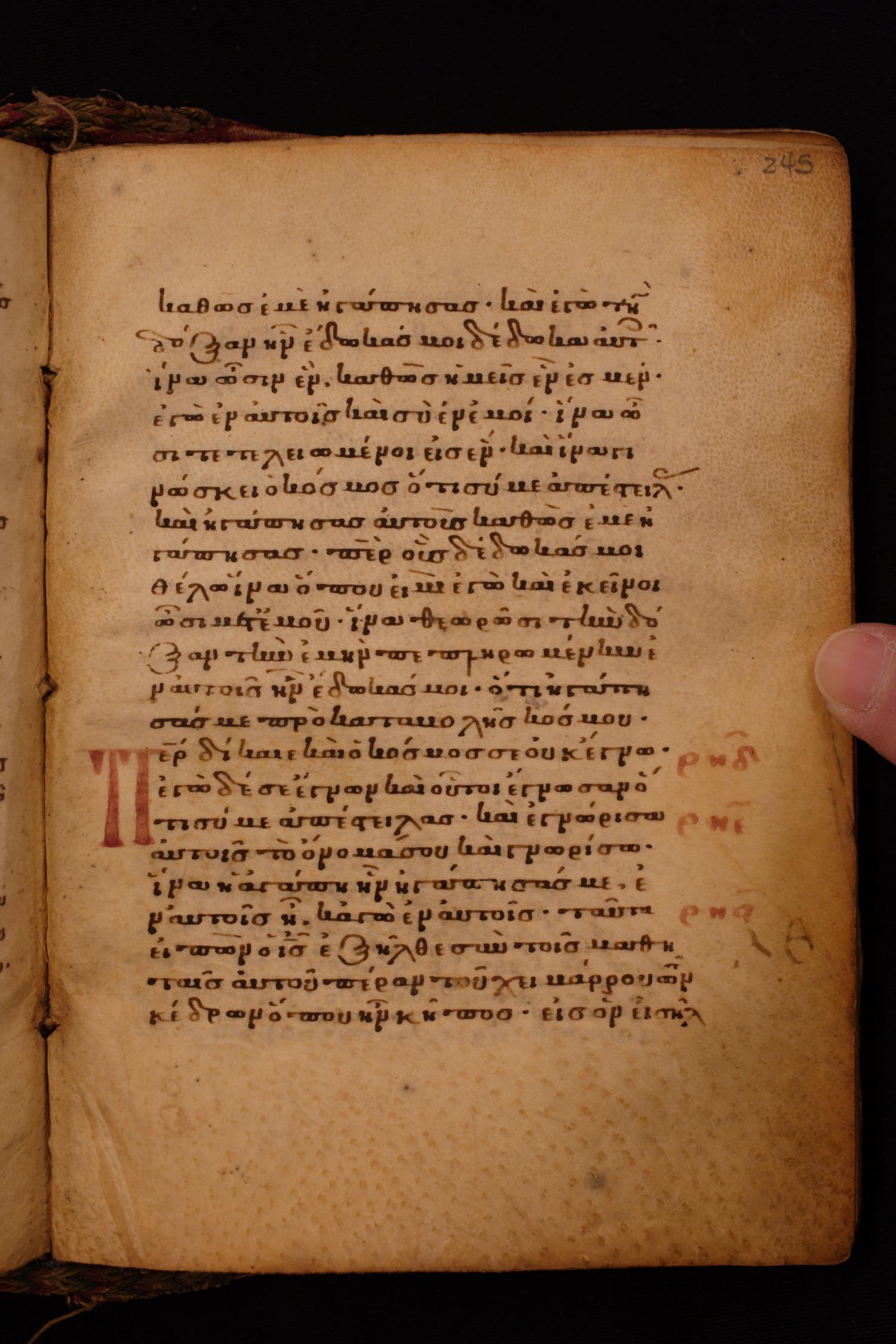 Thirteenth century minuscule of the Gospels on parchment; 256 leaves, single column, 22 lines per column.